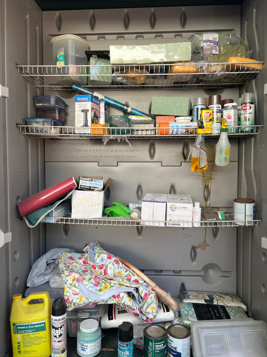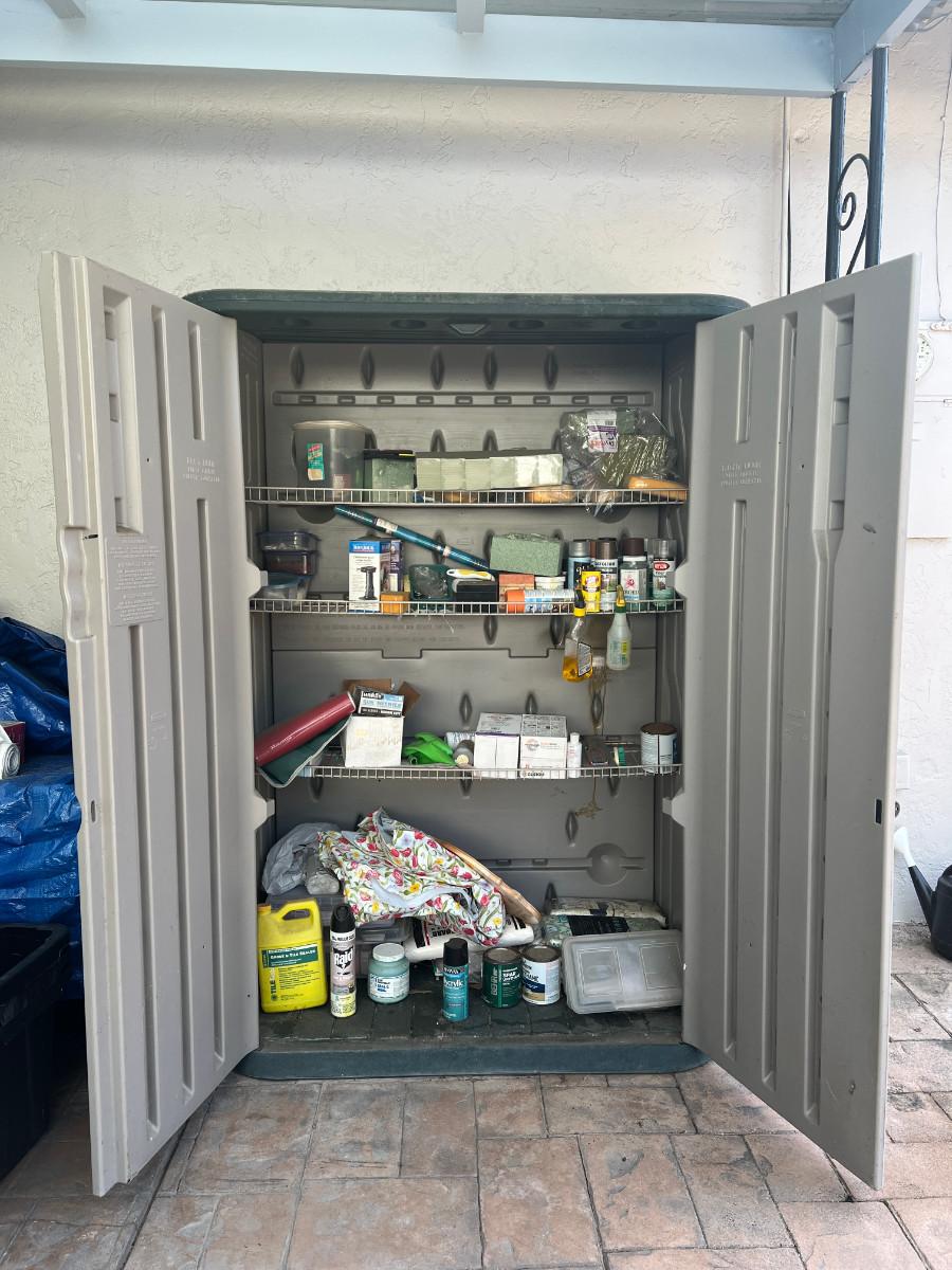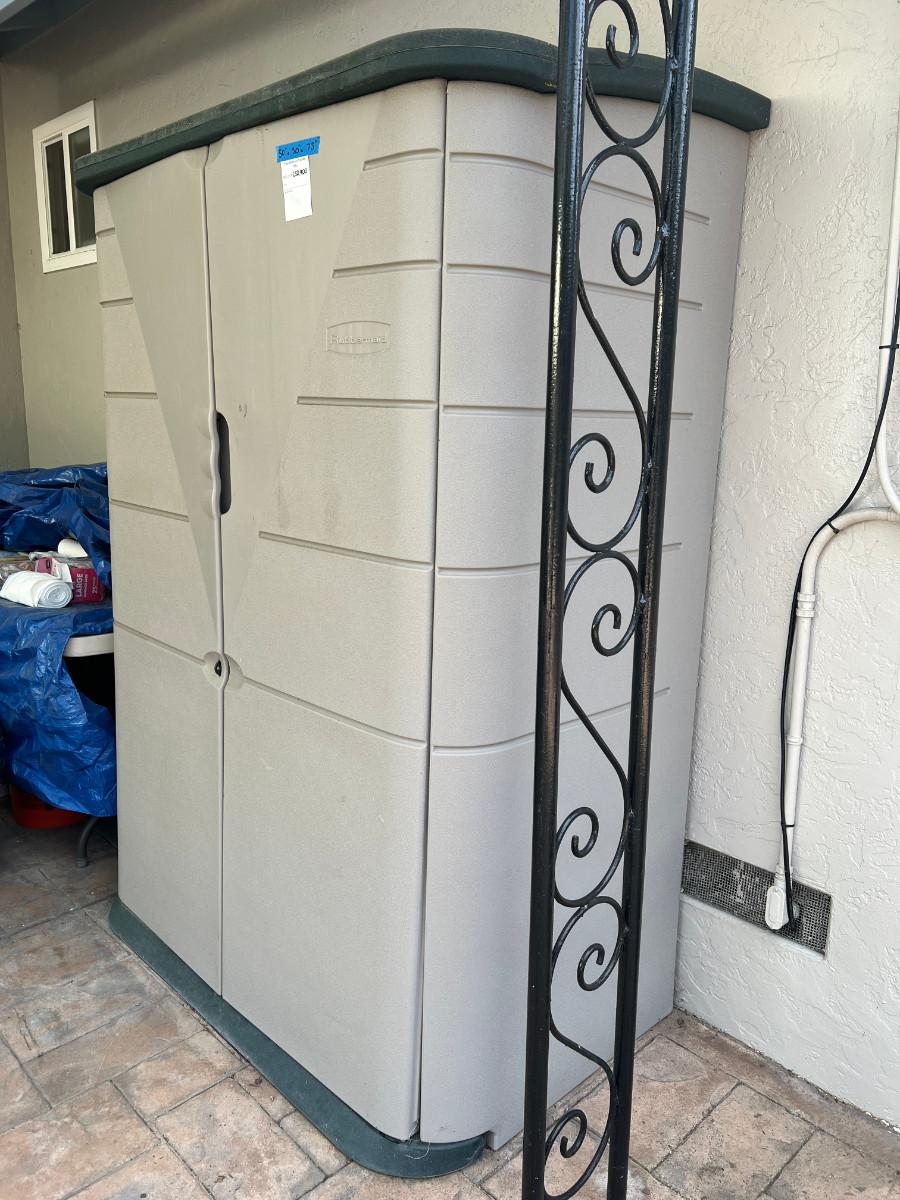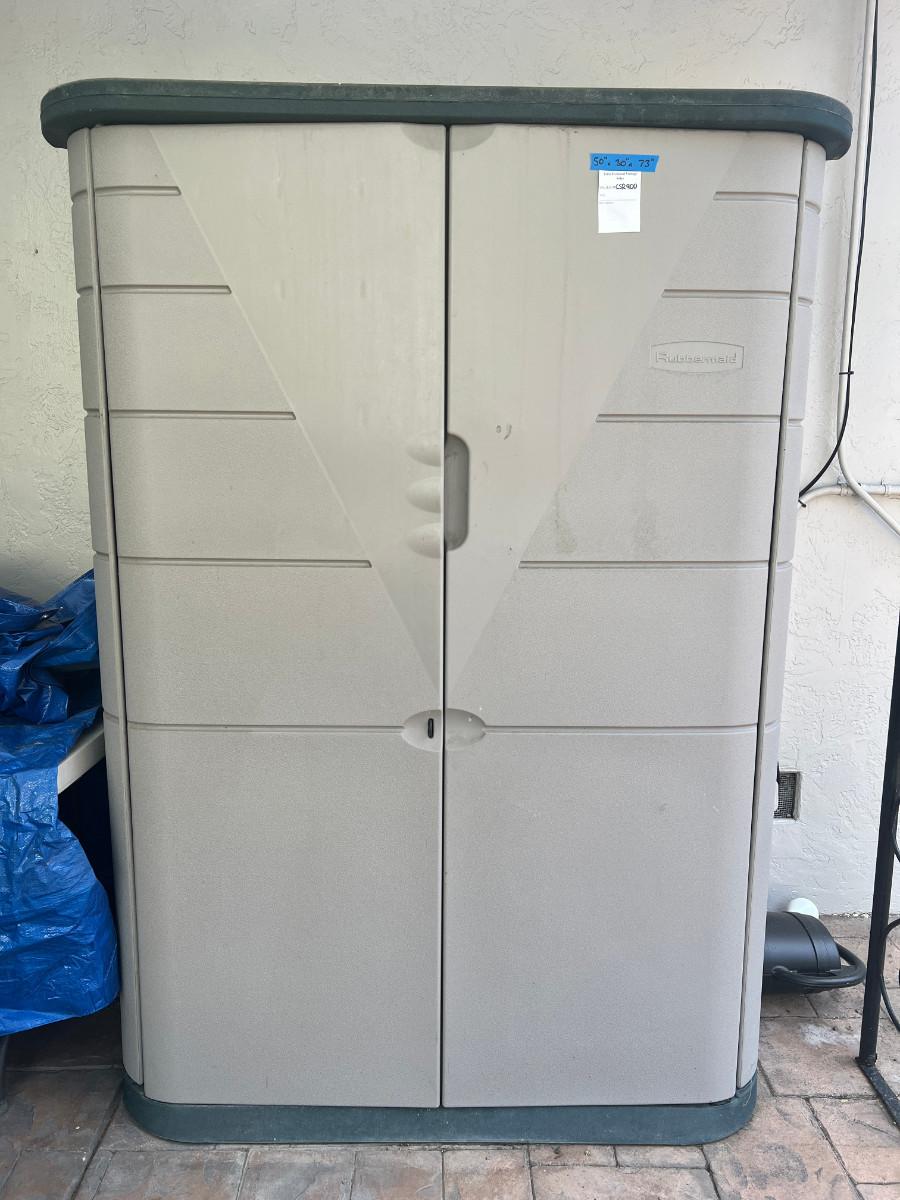 Good Condition 50 X 30 X73 Upright cabinet, this lot does not include the contents, shown just to show the storage inside. Made from durable materials like resin and plastic, so you'll never have to stress about rust or rot. You can also enjoy a comfortable seat on warm days on our patio storage bench that features ample storage space, making it the perfect place to store . Bring large enough vehicle to transport one piece.