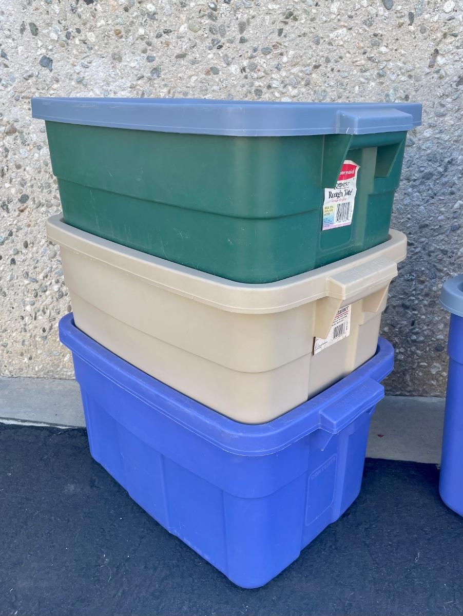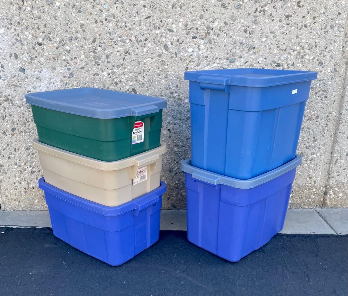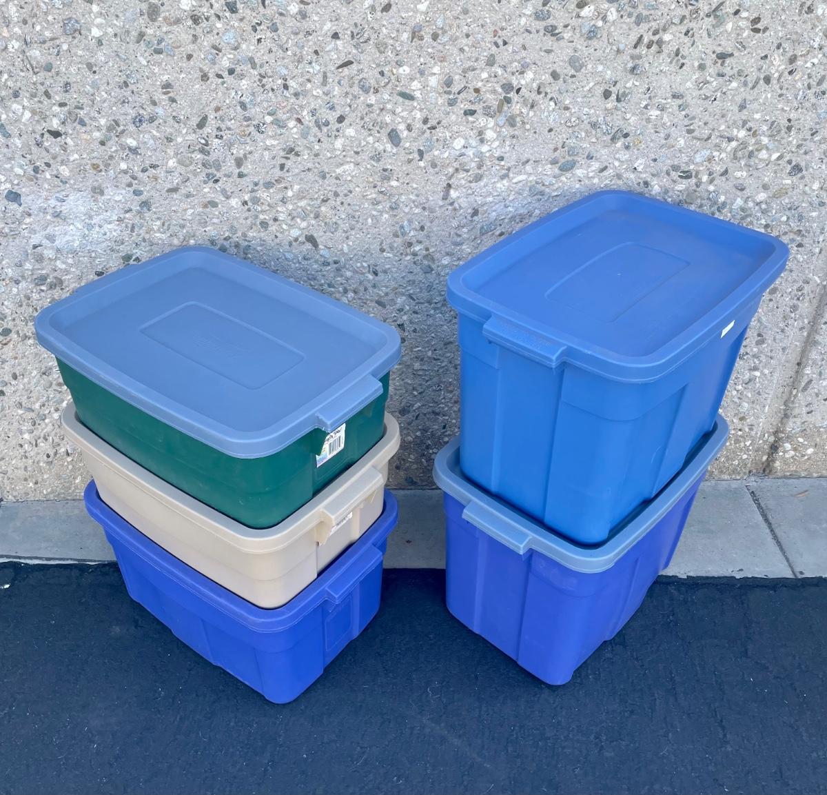 5 storage totes wit lids. 2 are 24”x16”x8.75”, 2 are 24”x16”x16.75”, and 1 is 24”x16”x12”. Used but in clean condition.