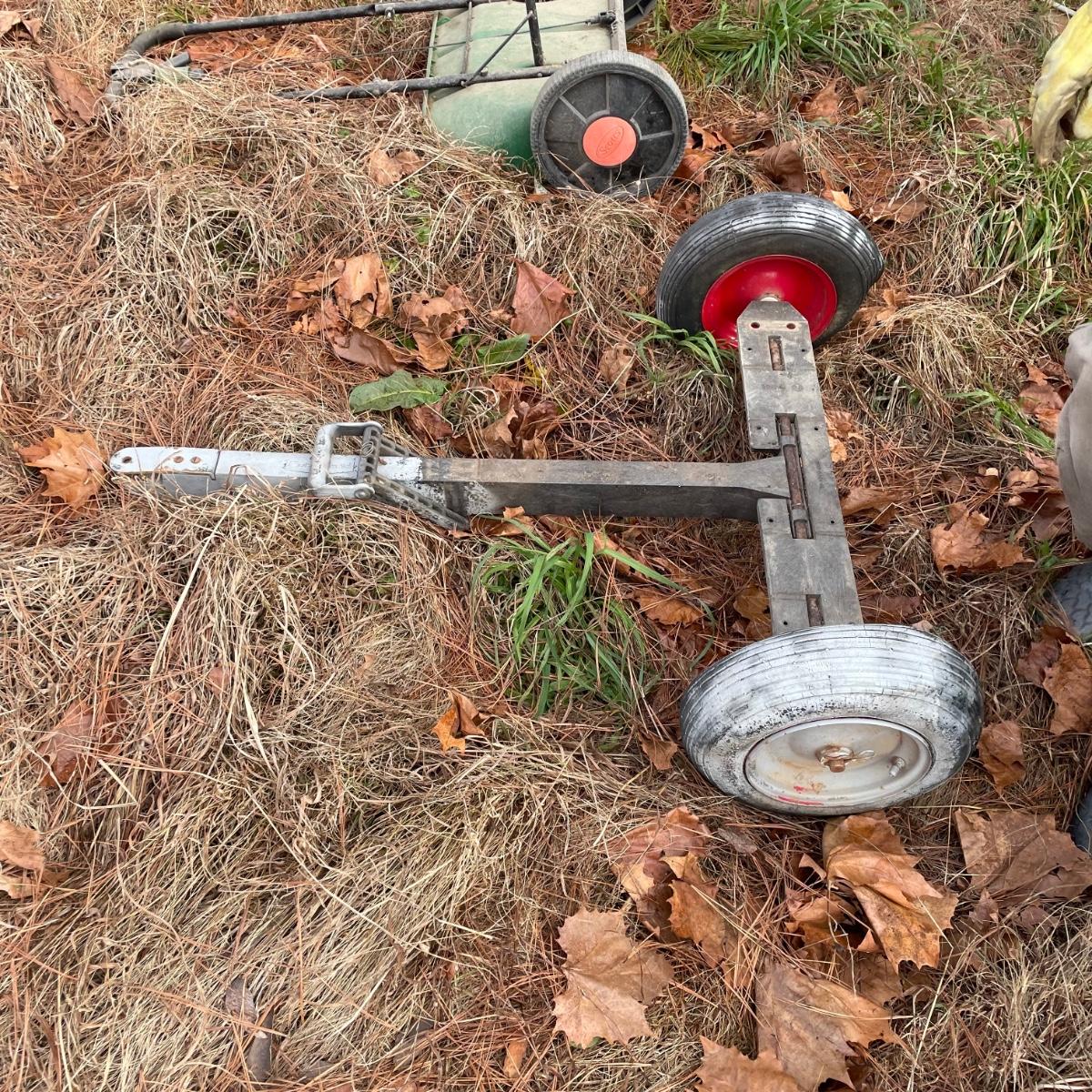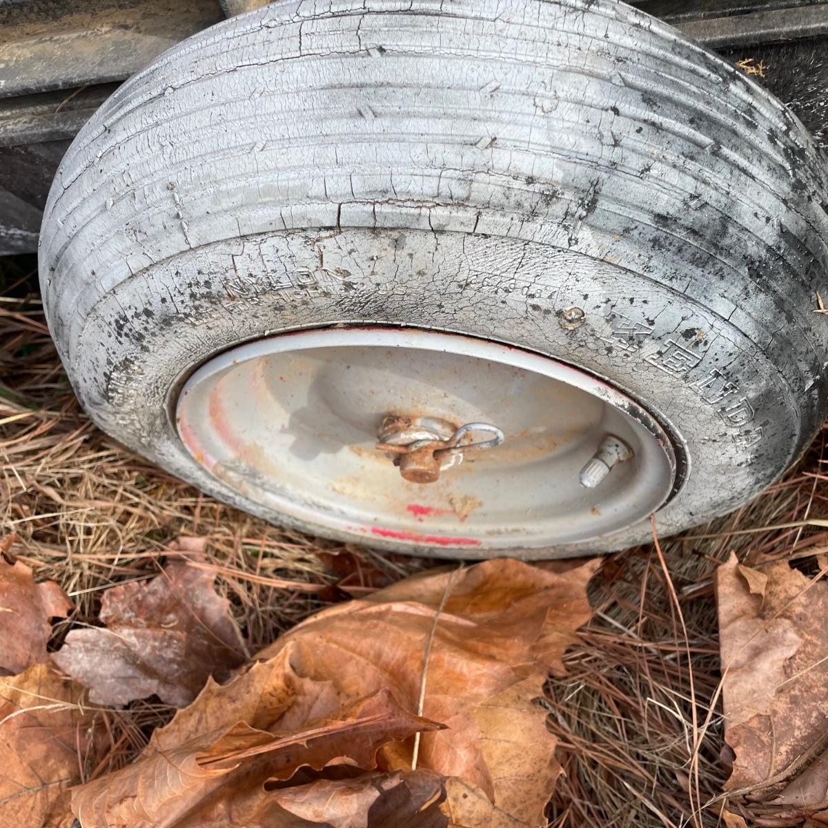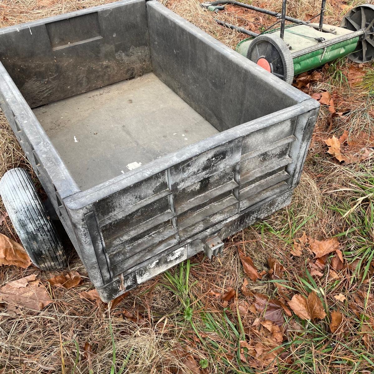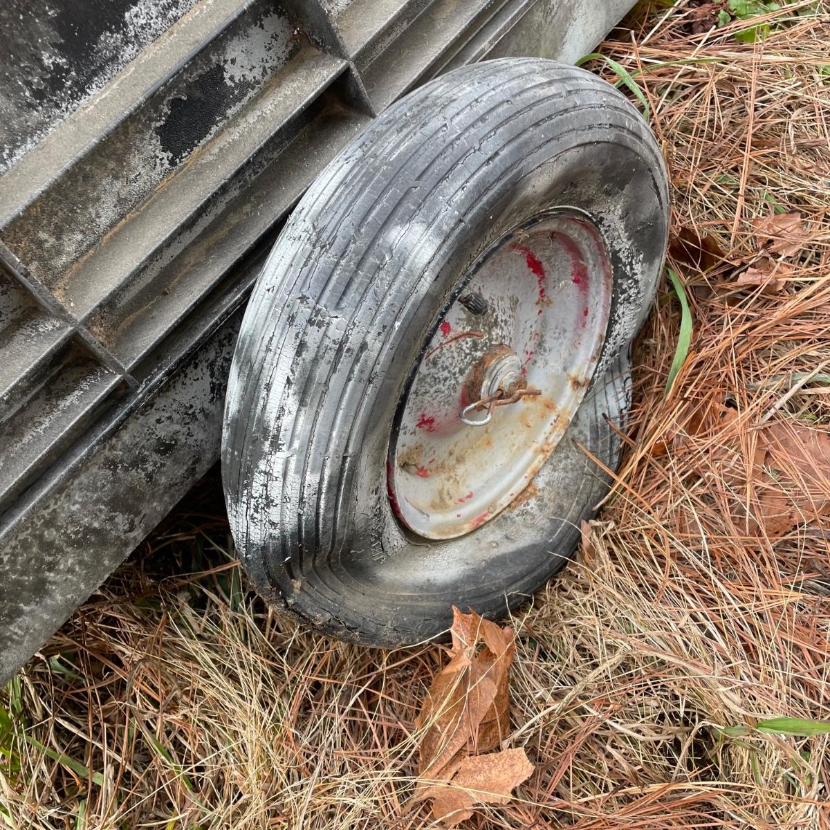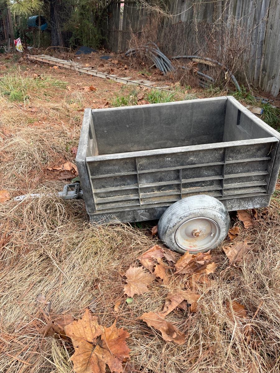 This handy small utility trailer is Rubbermaid and has removable sides and back. It’s currently not attached to wheel frame but it simply needs bolting on (bolts are included). The tires do need replacing.