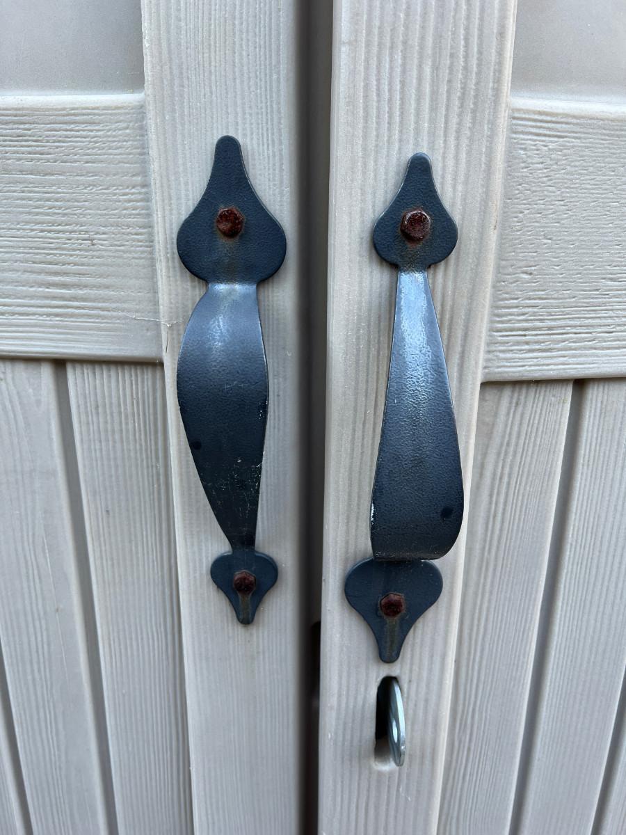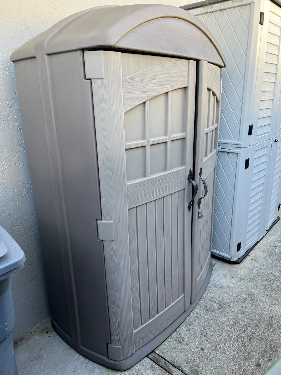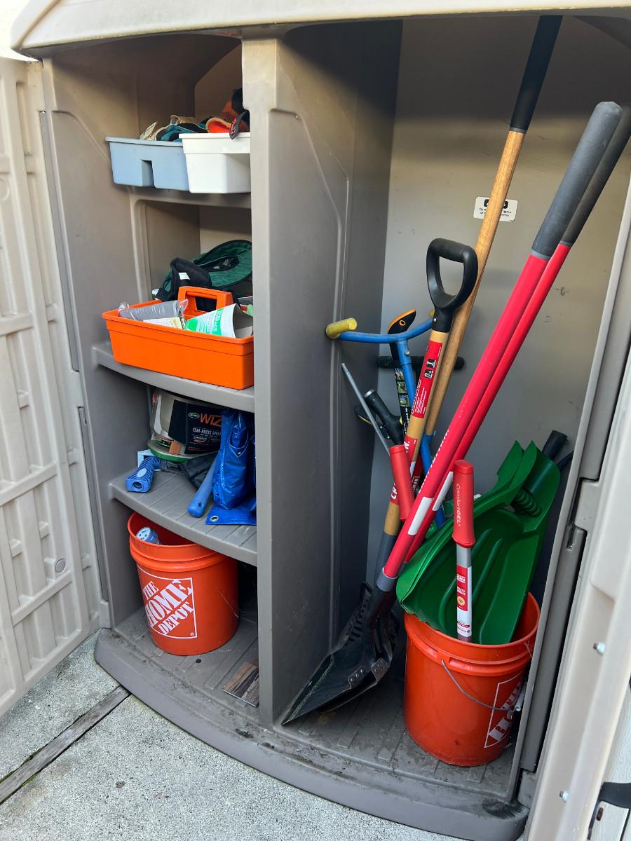 50X25X71 Contents NOT included. Shelving and storage area for garden toold.
