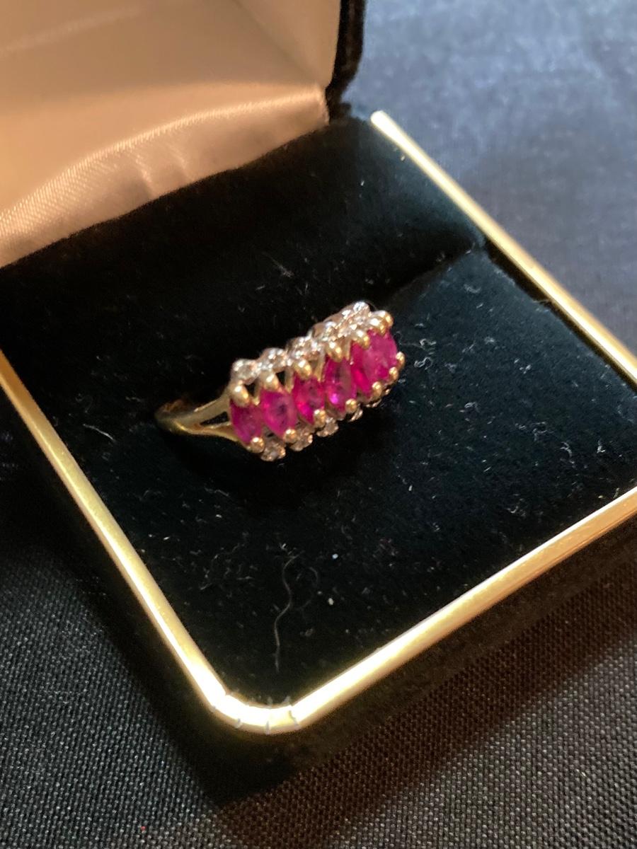Ruby and Diamond Band Ring Size 4.5 in 10k Gold