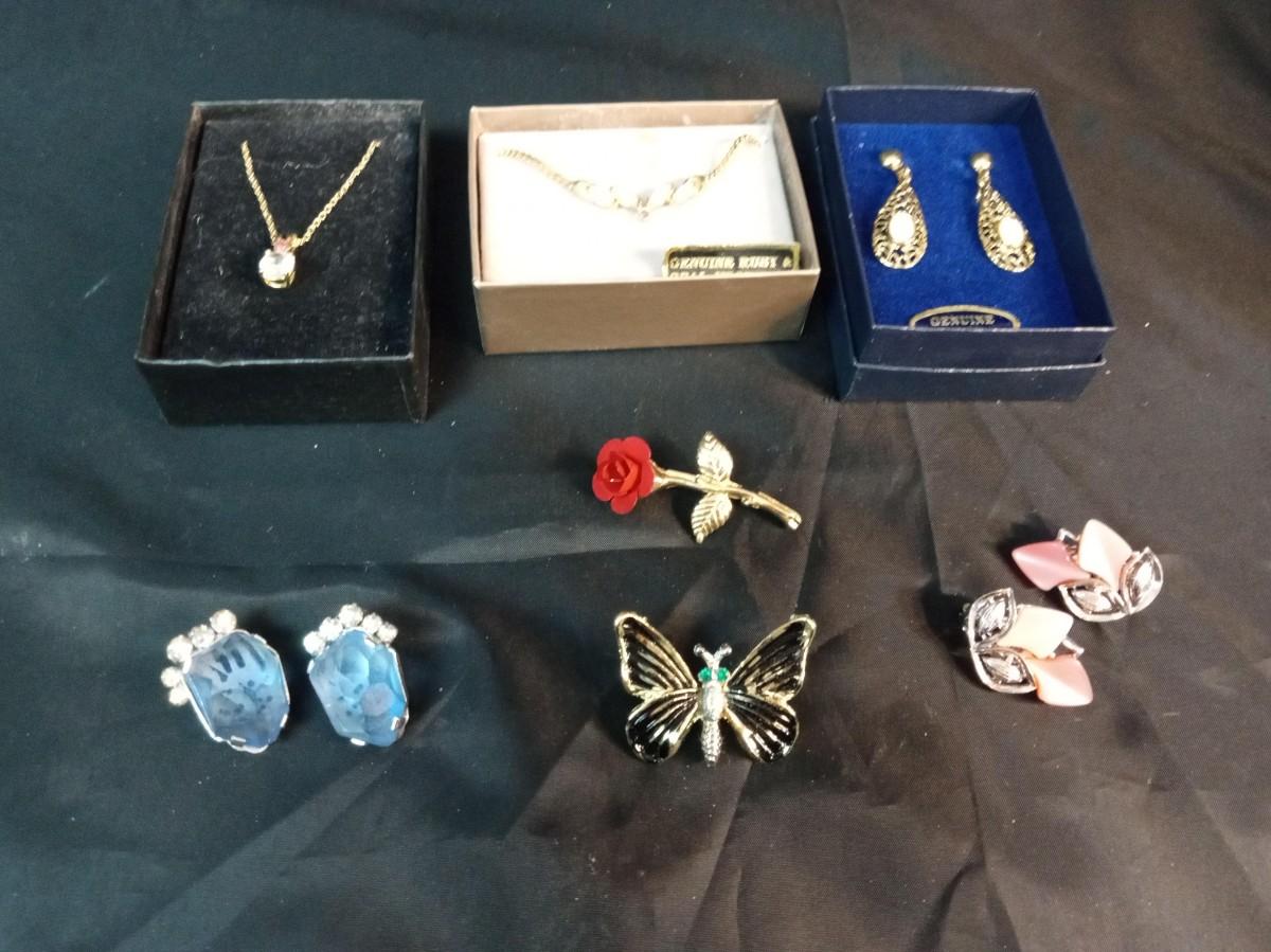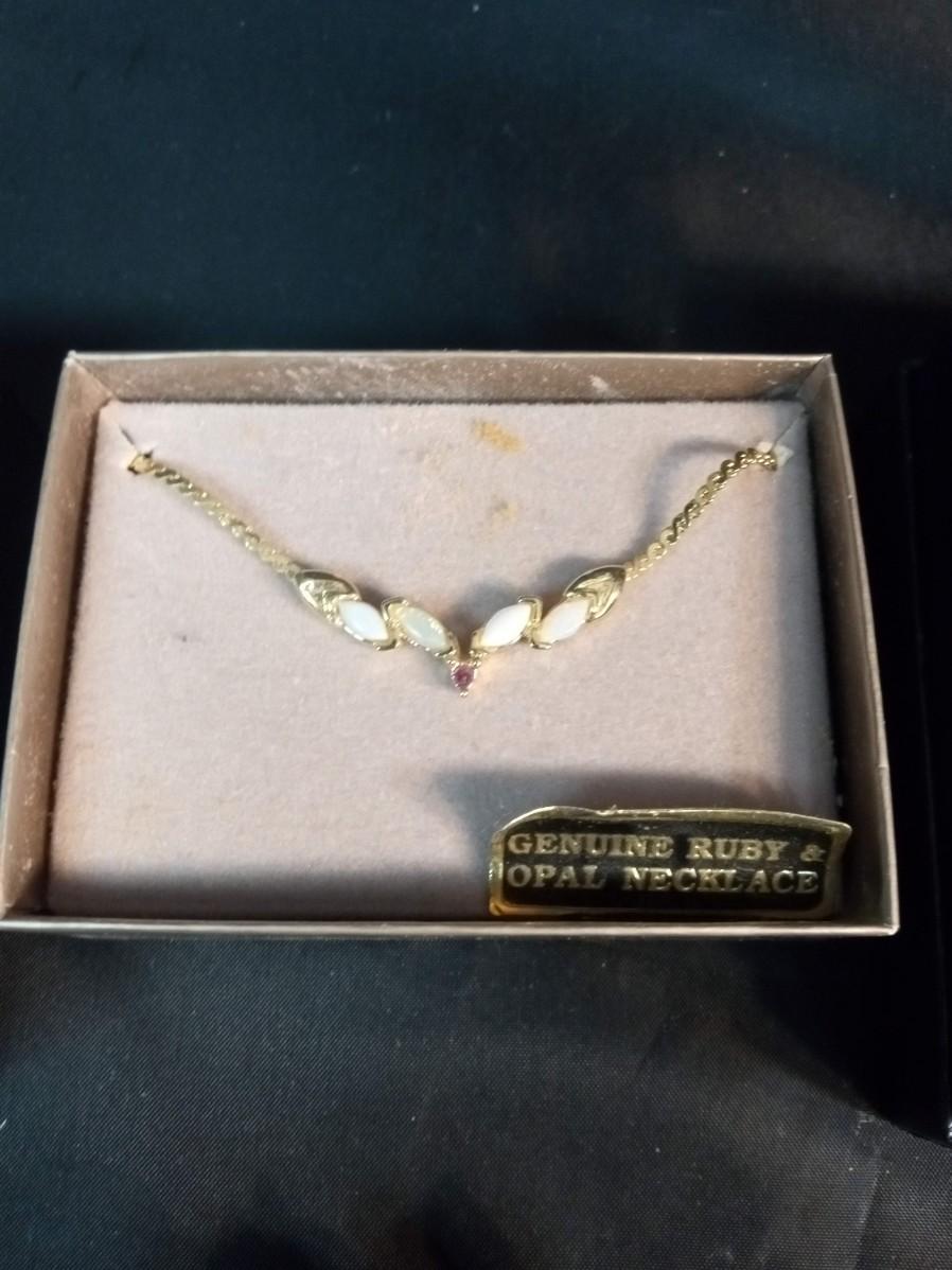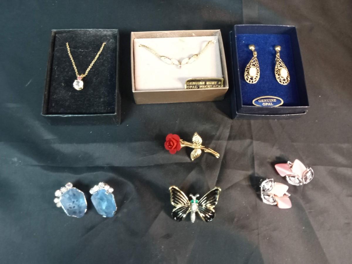 RUBY AND OPAL JEWELRY, BROOCHES, CLIP ON EARRINGS