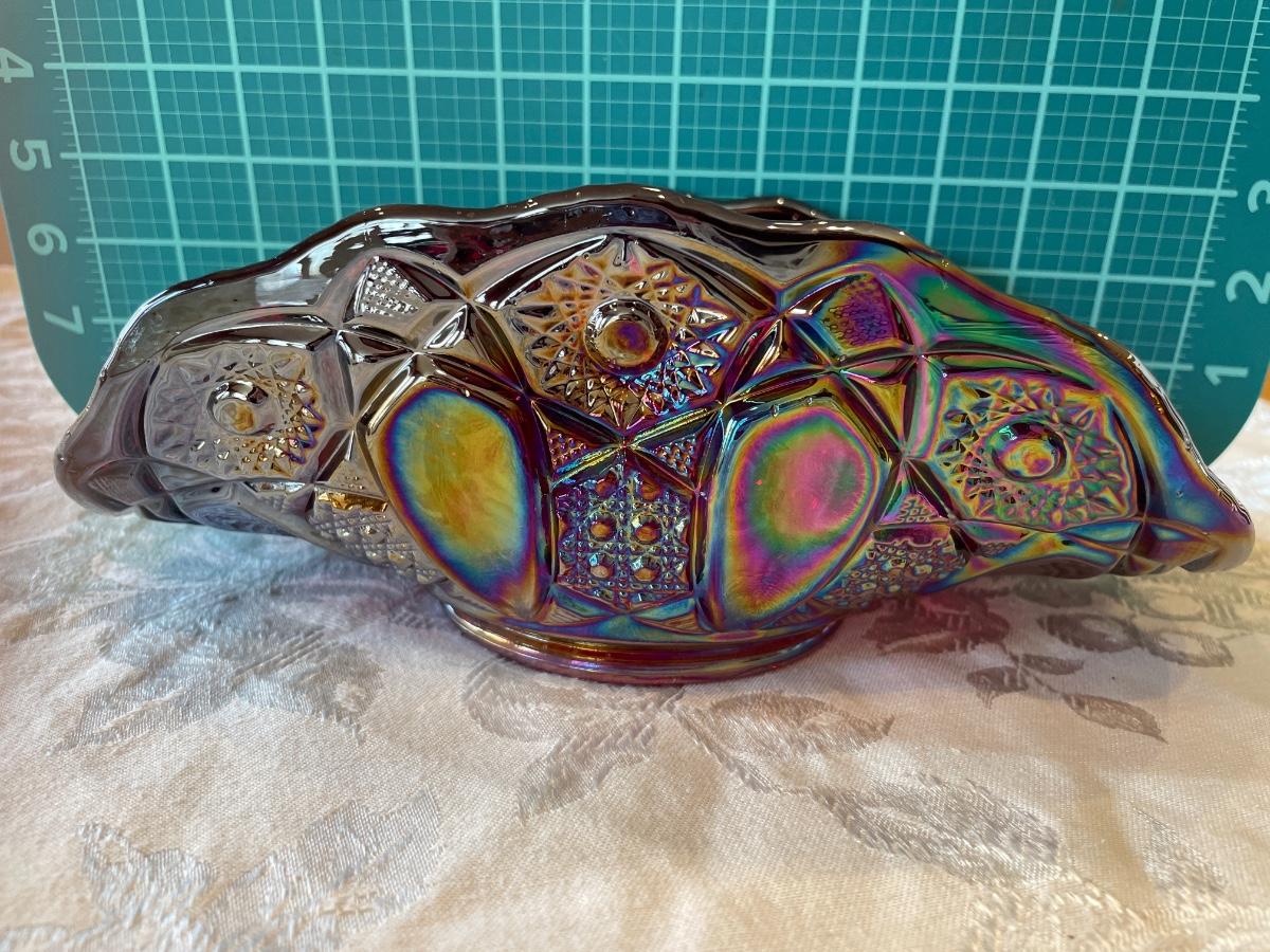 Ruby carnival glass folded banana bowl