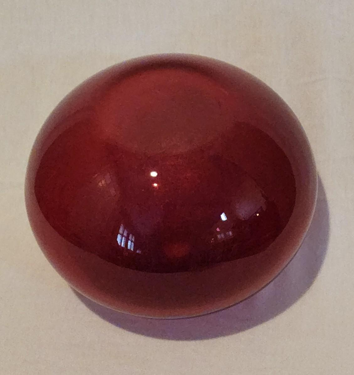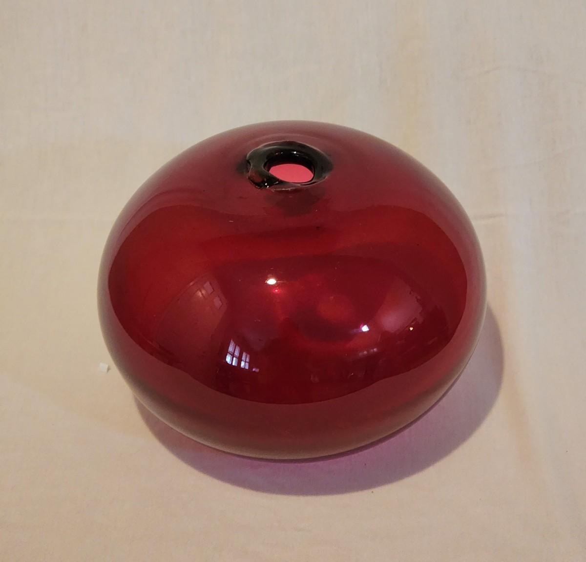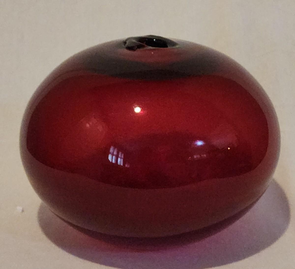 Unsigned art glass vase. Heavy, primitive style. 5" tall, 6" diameter