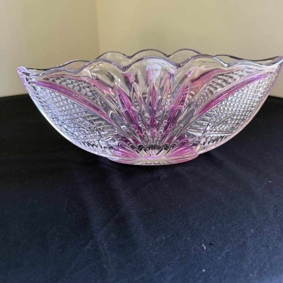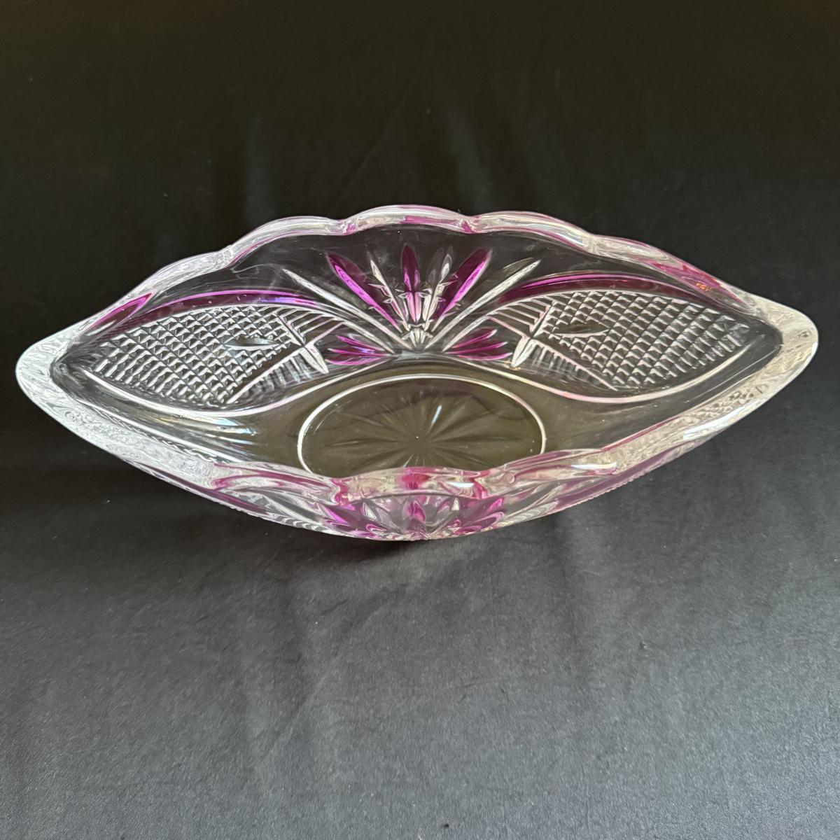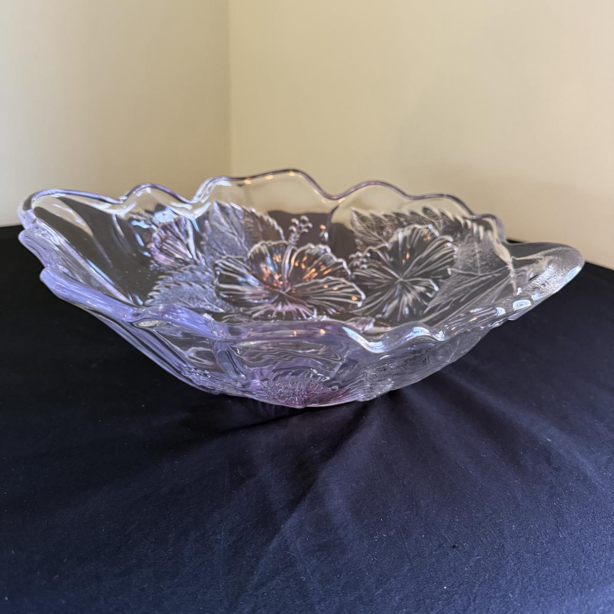 This lot contains a gorgeous collection of four crystal with a striking purple flash color. First we have a stunning soft lavender bowl with botanical details etched into it. This piece measures 11.5” x 13” x 3.75”H. Then we have a gorgeous oval bowl with scalloped edges and lovely detailing, of course featuring the purple flash of color. The last two are a set of narrow matching vases. These pieces both measure 2.5”D x 7.5”. Shipping available.