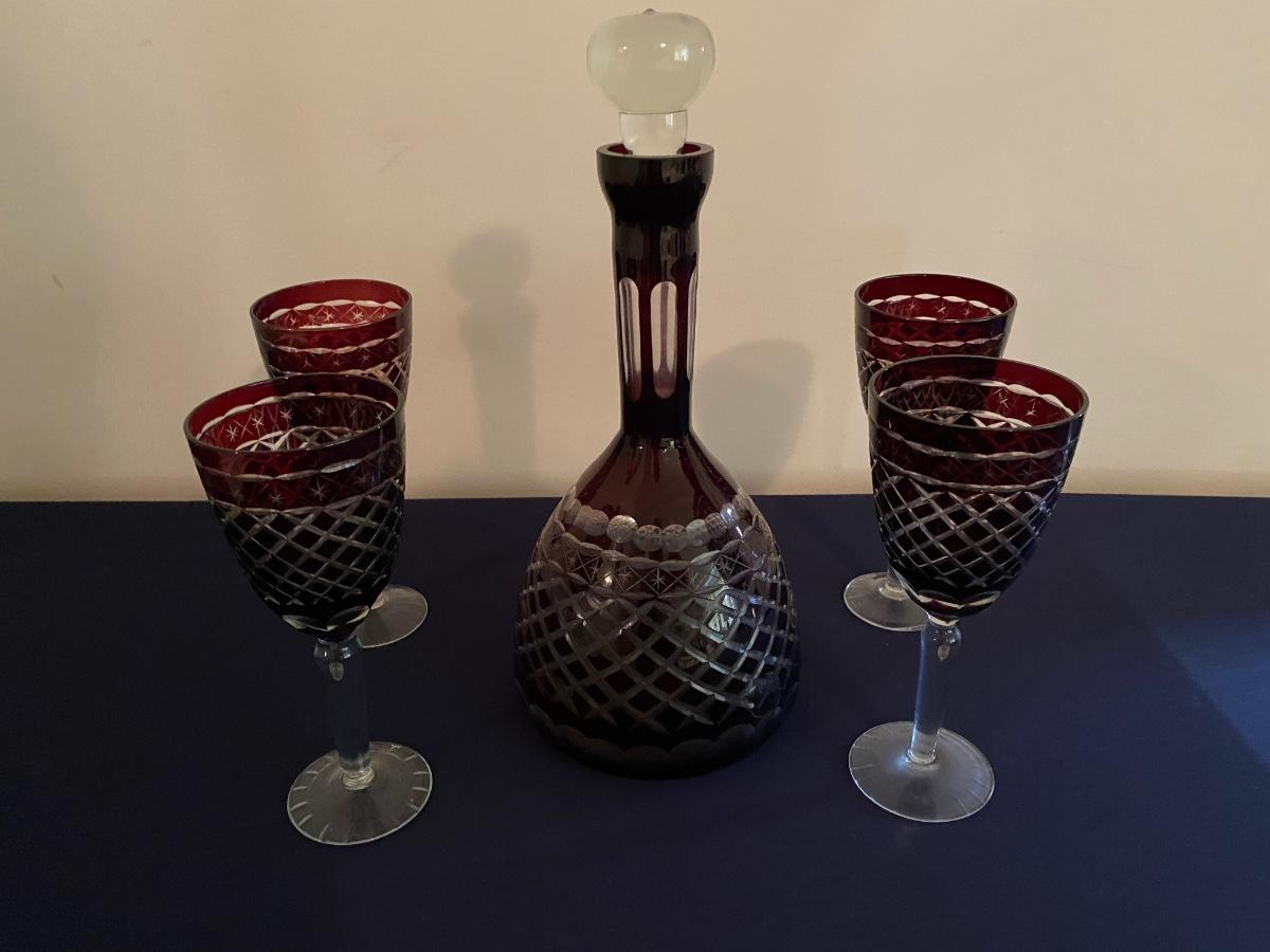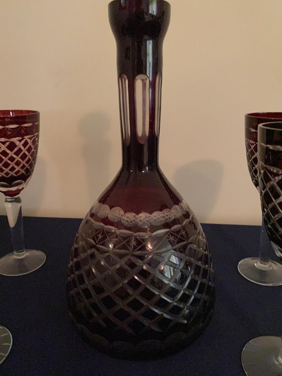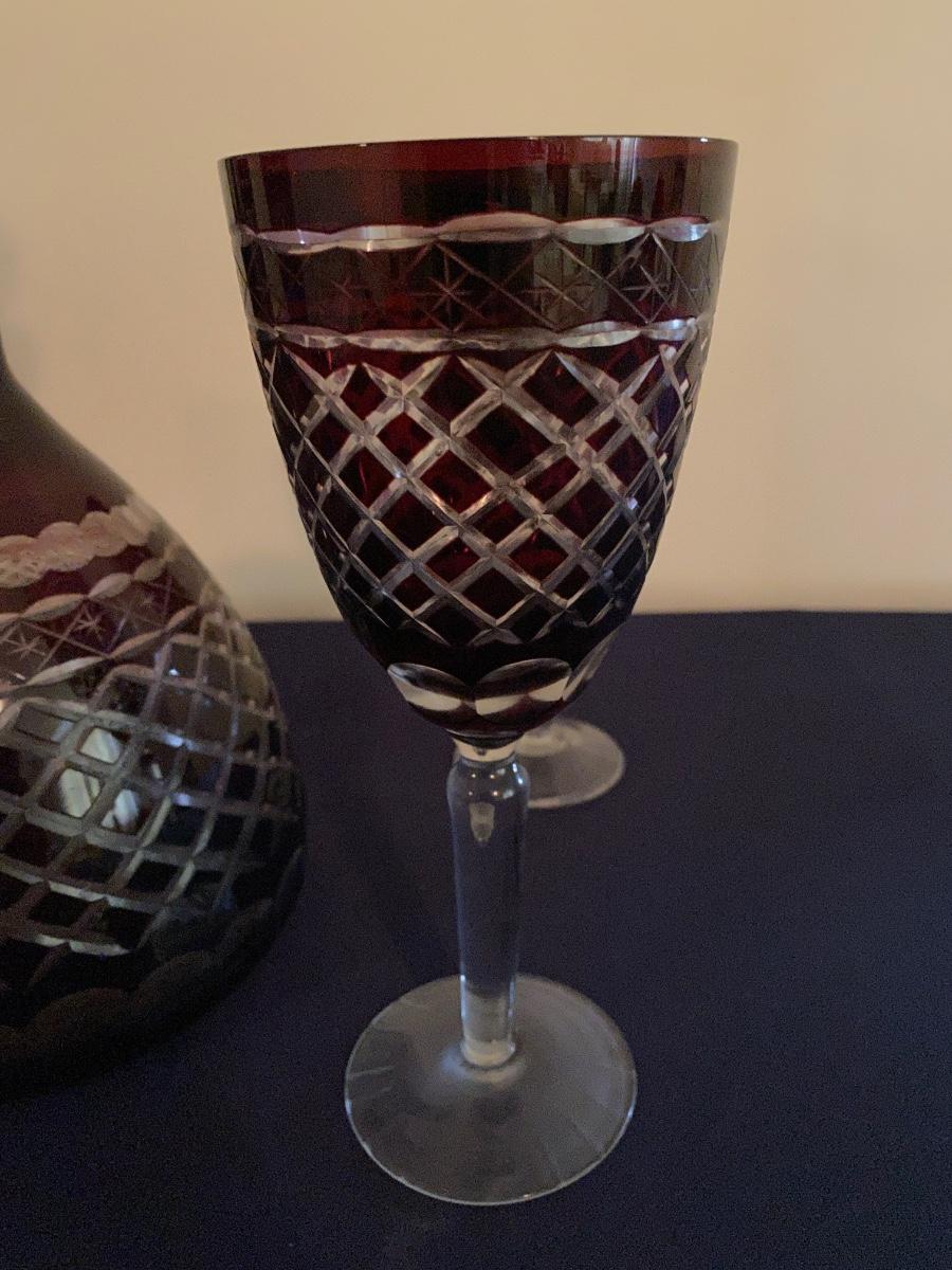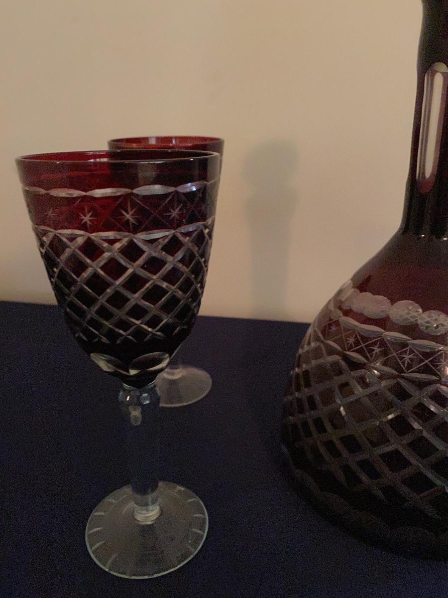 Ruby red crystal Glass Decanter and Wine Glass Set As Pictured