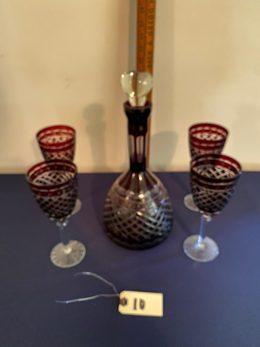 Ruby Red Crystal Glass Decanter and Wine Glass Set