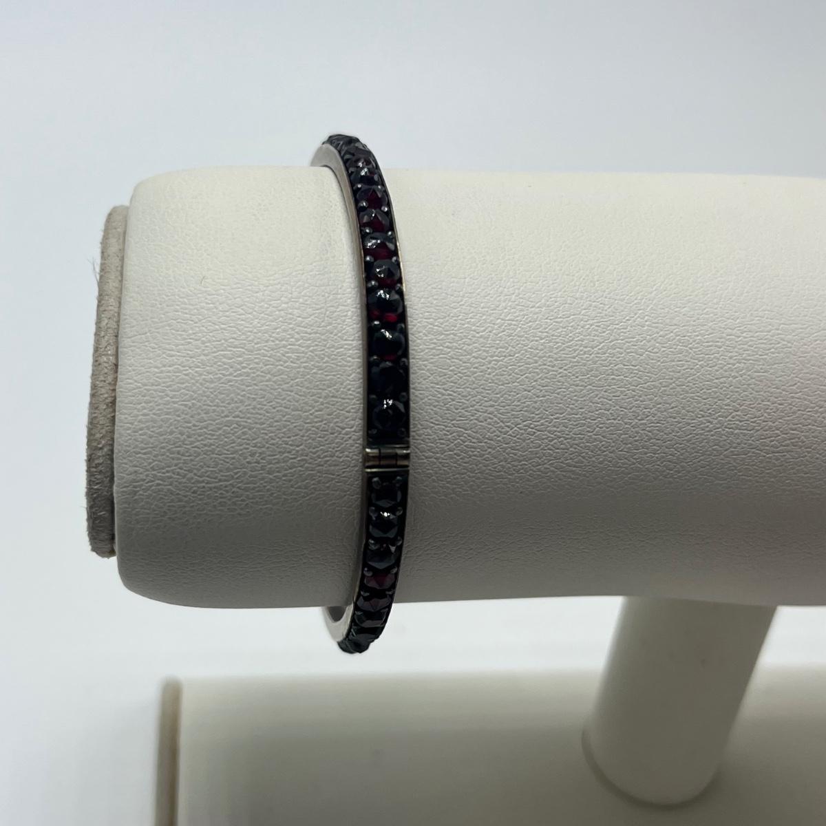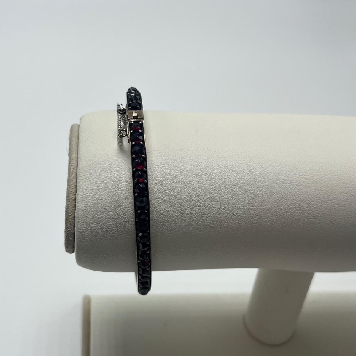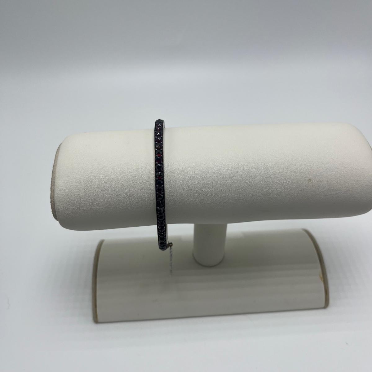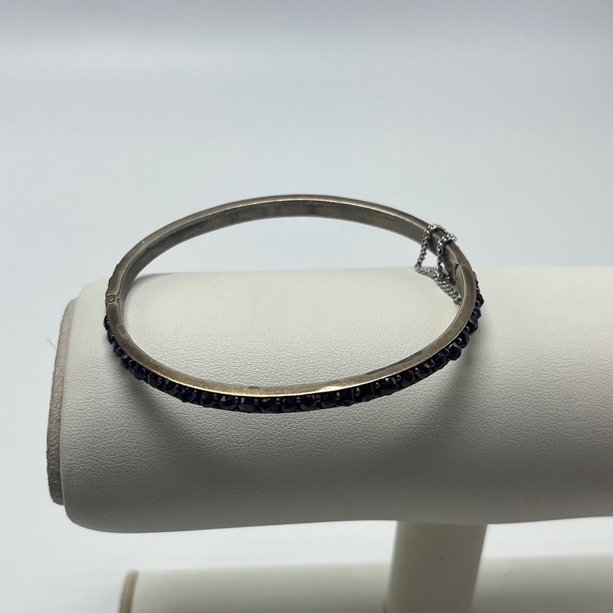 Lot includes a brooch, necklace, ring and bracelet that appear to be a set all with ruby colored stones. No markings were found on jewelry. The brooch has a unique back that opens up with a space to fit something small inside.