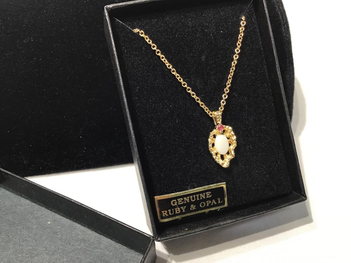 Ruby  Opal Necklace Gold Tone Chain. New in Box