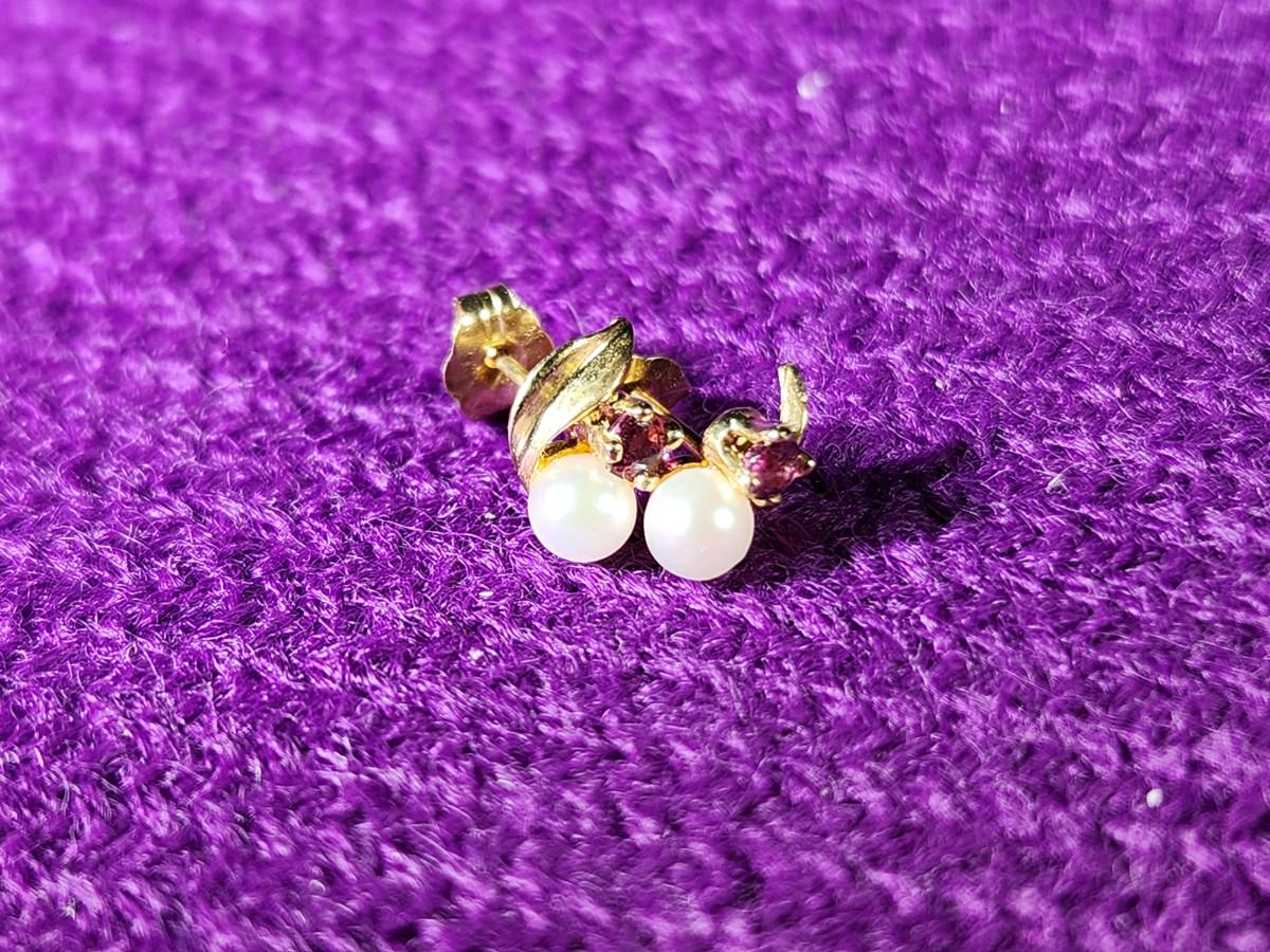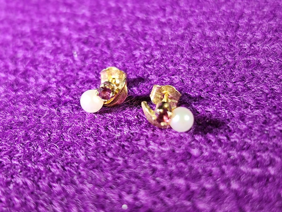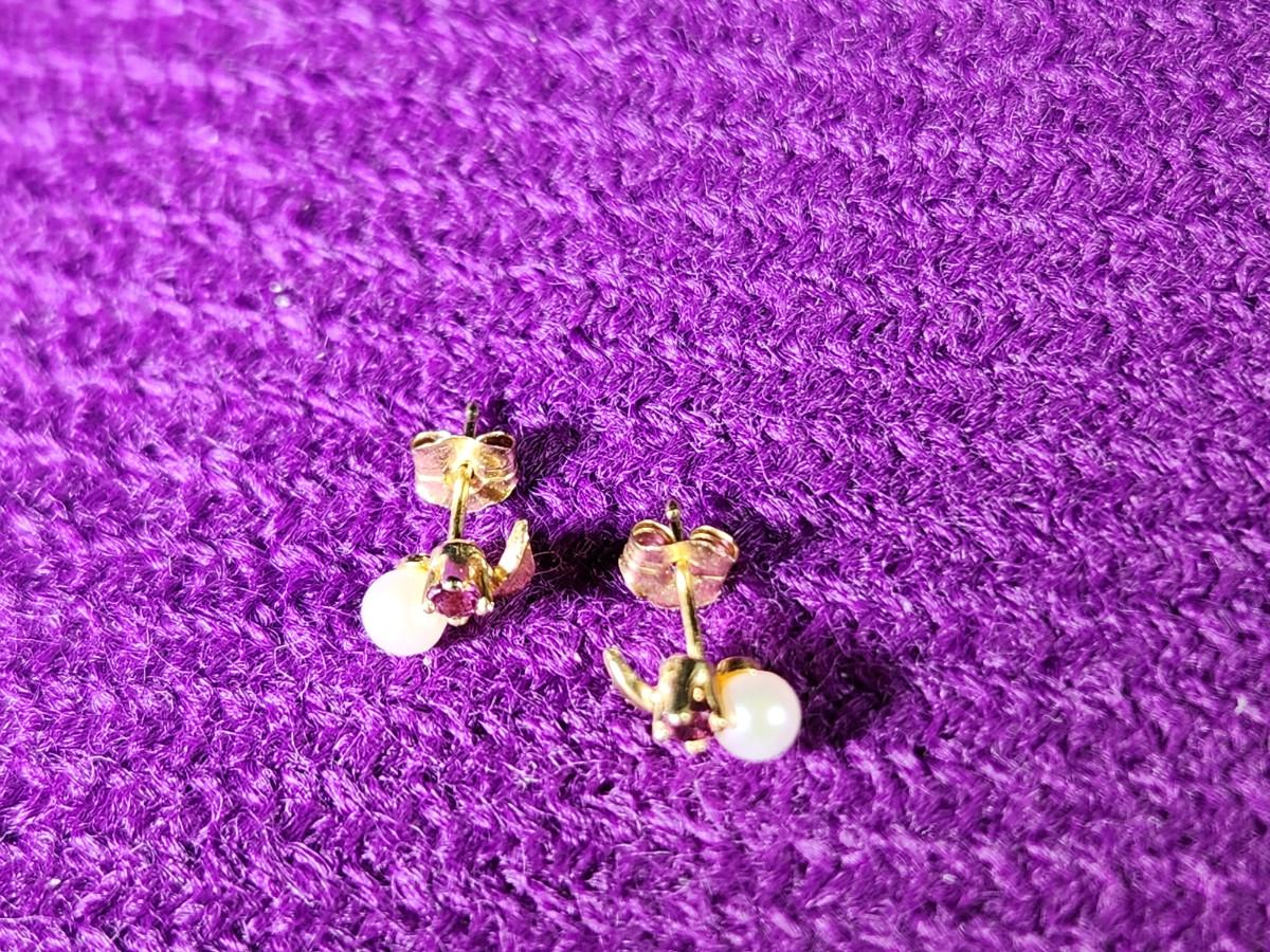 This auction lot is for a pair of Ruby & Pearl Earrings on Gold Mounts. These earrings are quite stylish and pretty.
