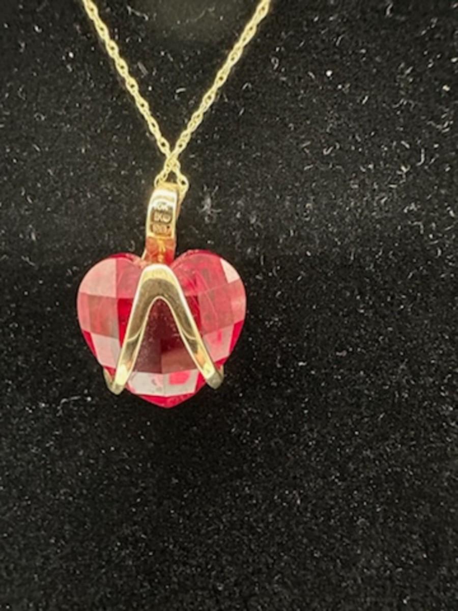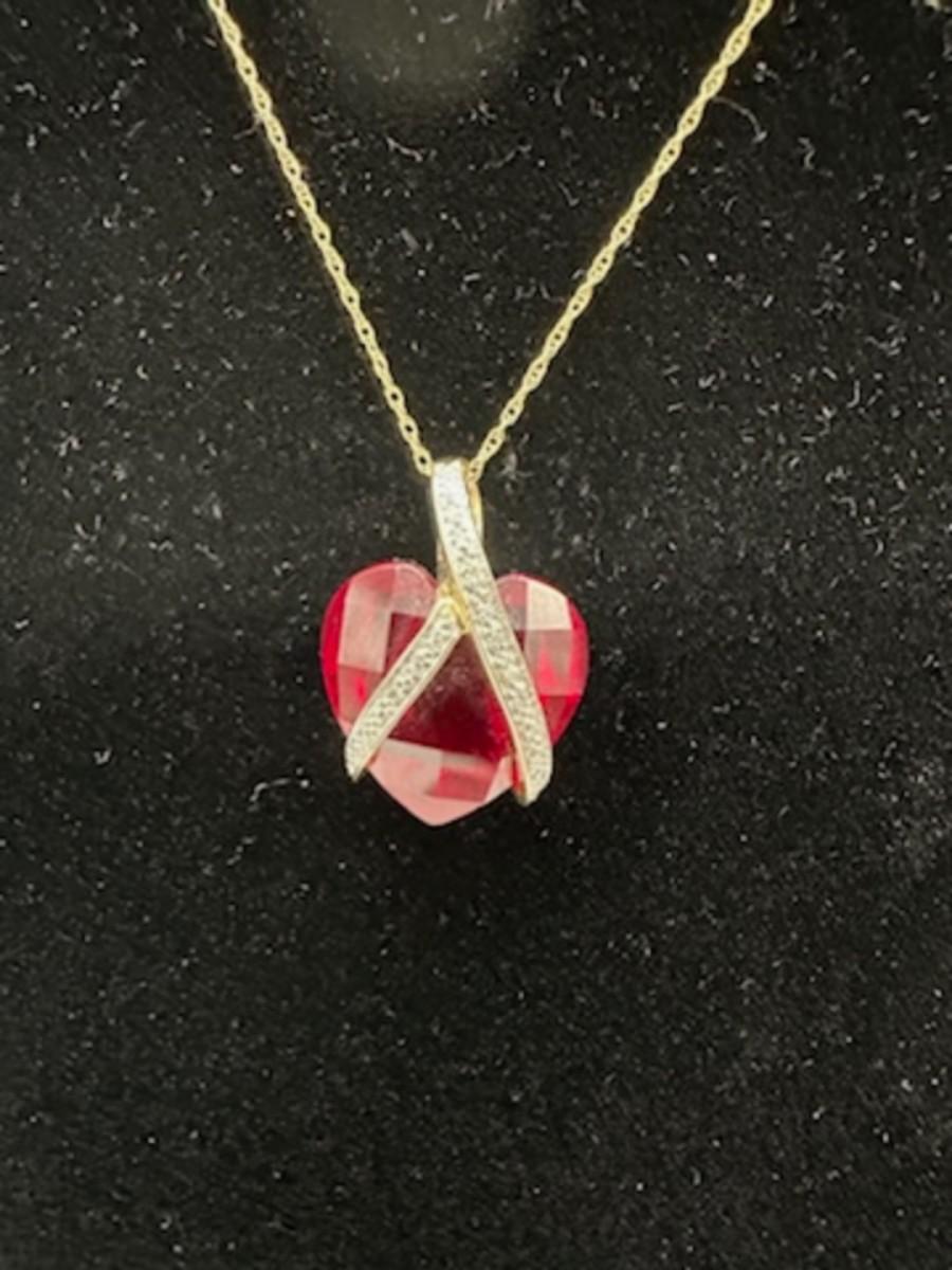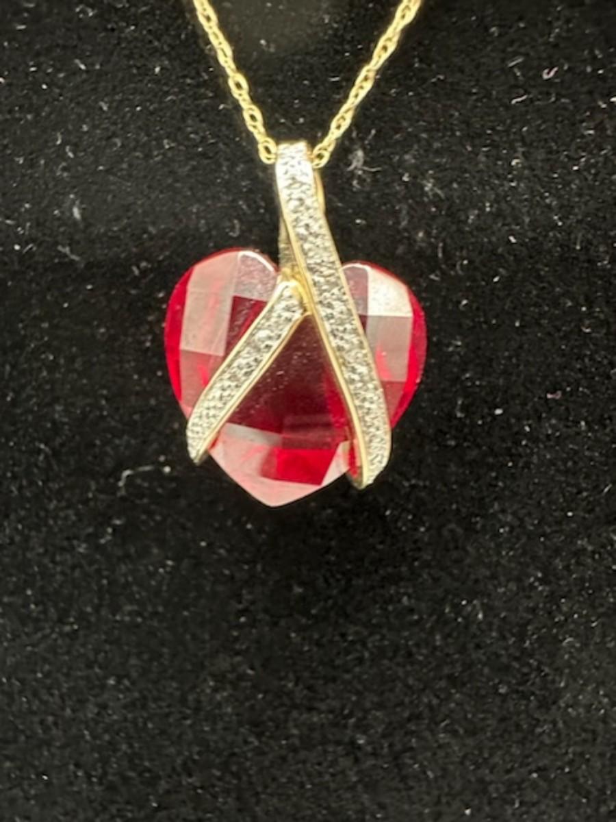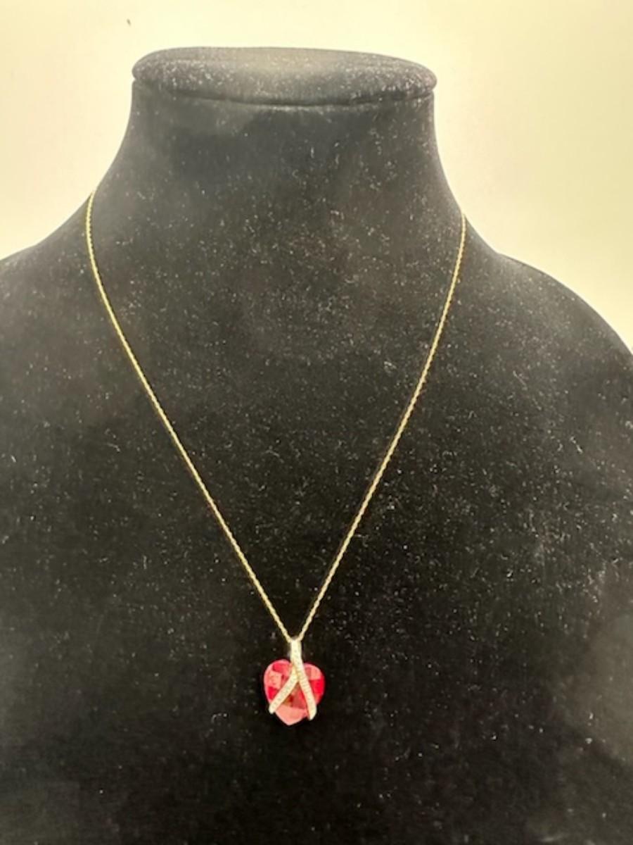 Ruby pendant on a 10K gold 19 inch chain. This item retails at Macy's.