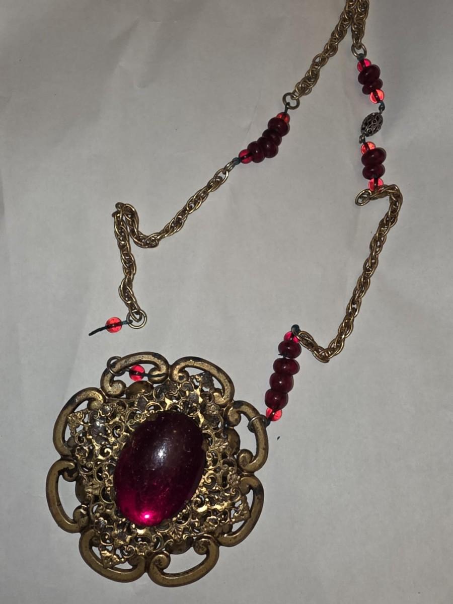 Ruby red and gold tone necklace