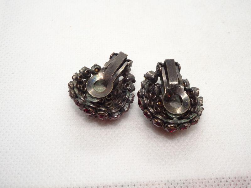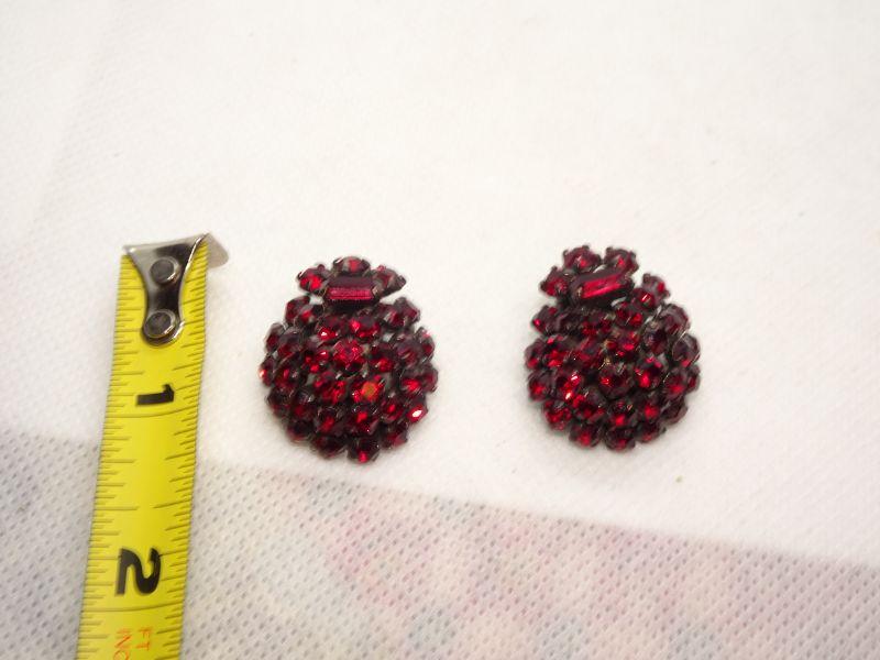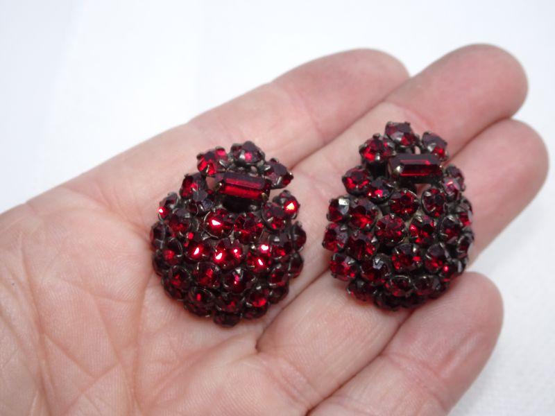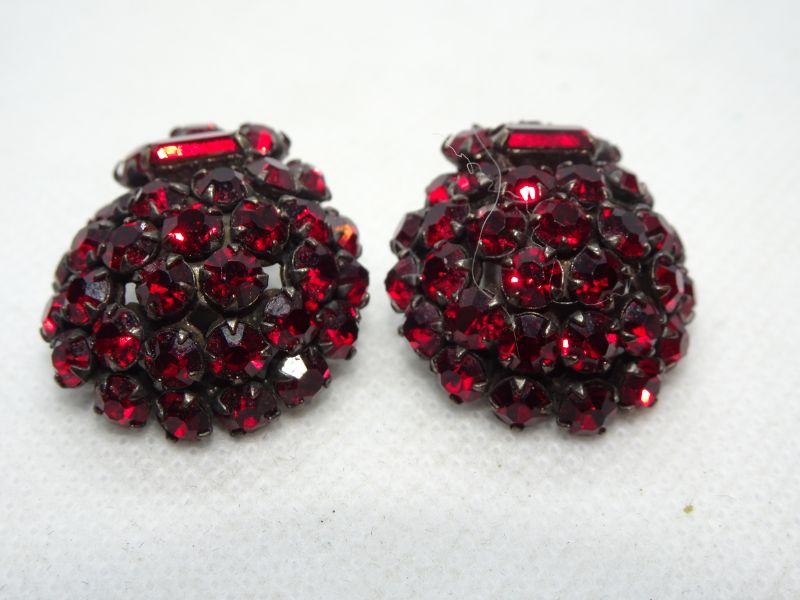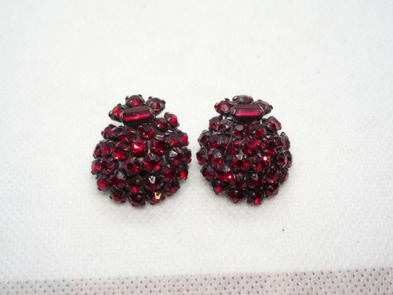 Ruby Red Cherry Shaped Rhinestone Clip Earrings