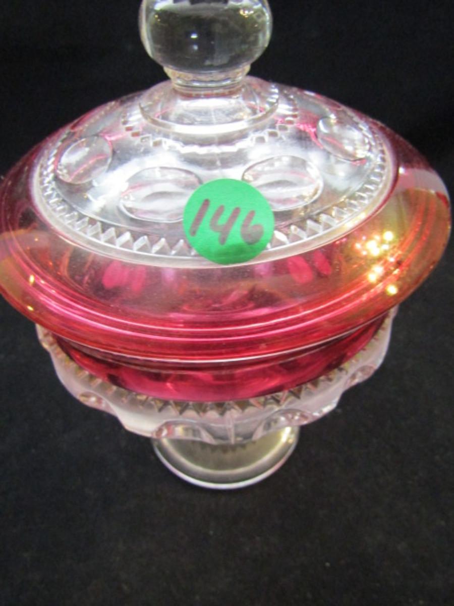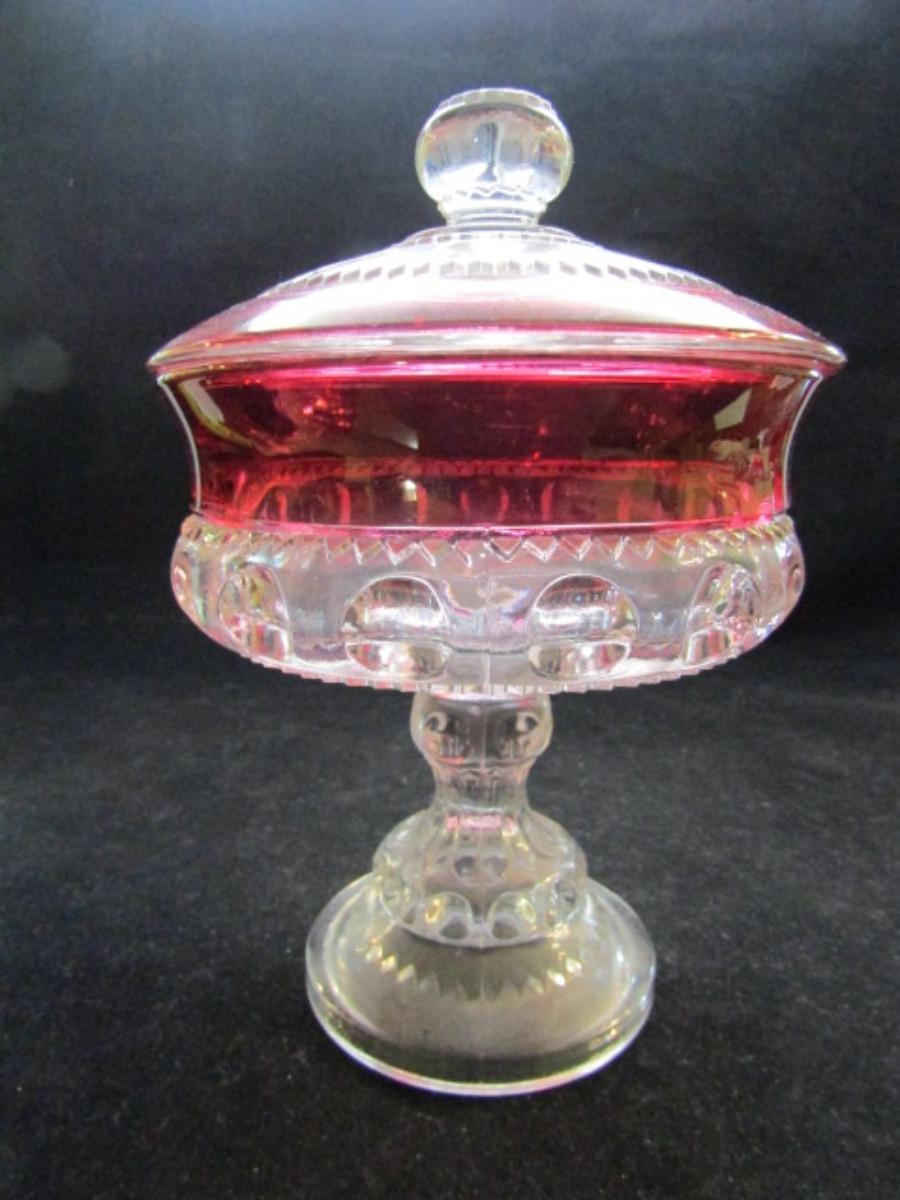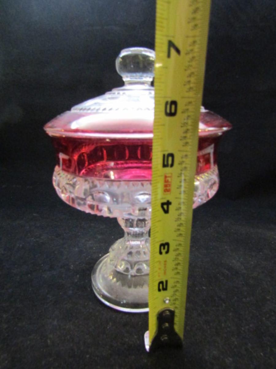 Ruby Red Flash Glass Pedestal Candy Dish with Lid- Possibly Indiana Glass (#146)