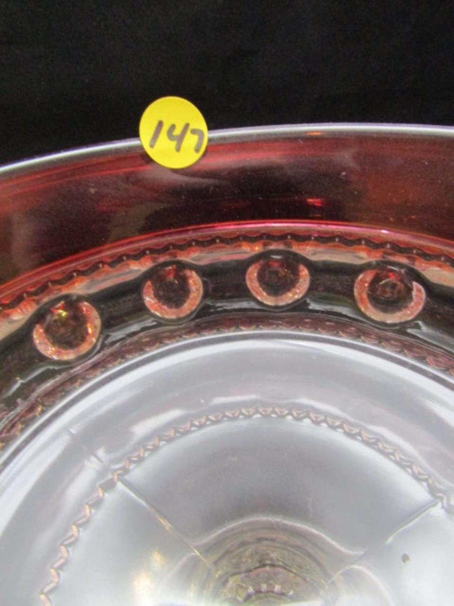 Ruby Red Flash Glass Pedestal Bowl/Candy Dish- Possibly Indiana Glass (#147)