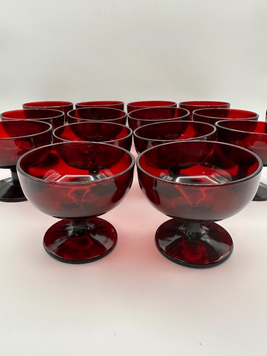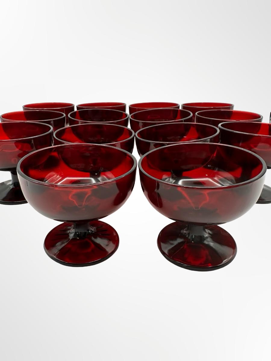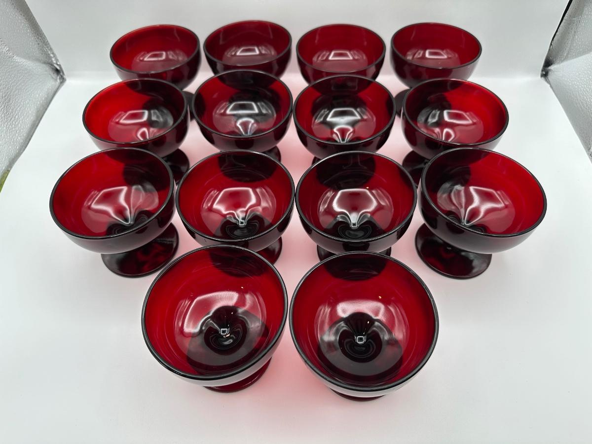 Ruby Red Glass Dessert or Sherbet Cups - Set of 14