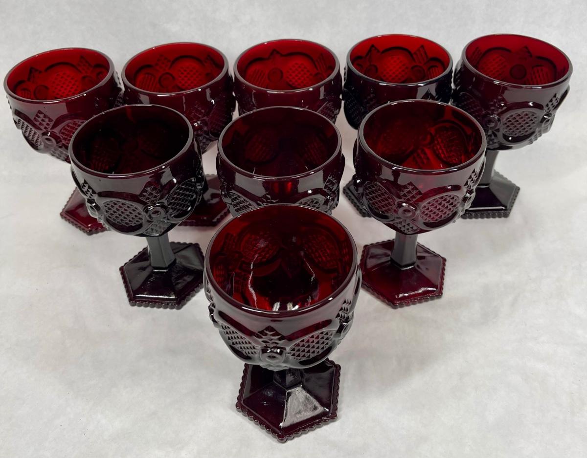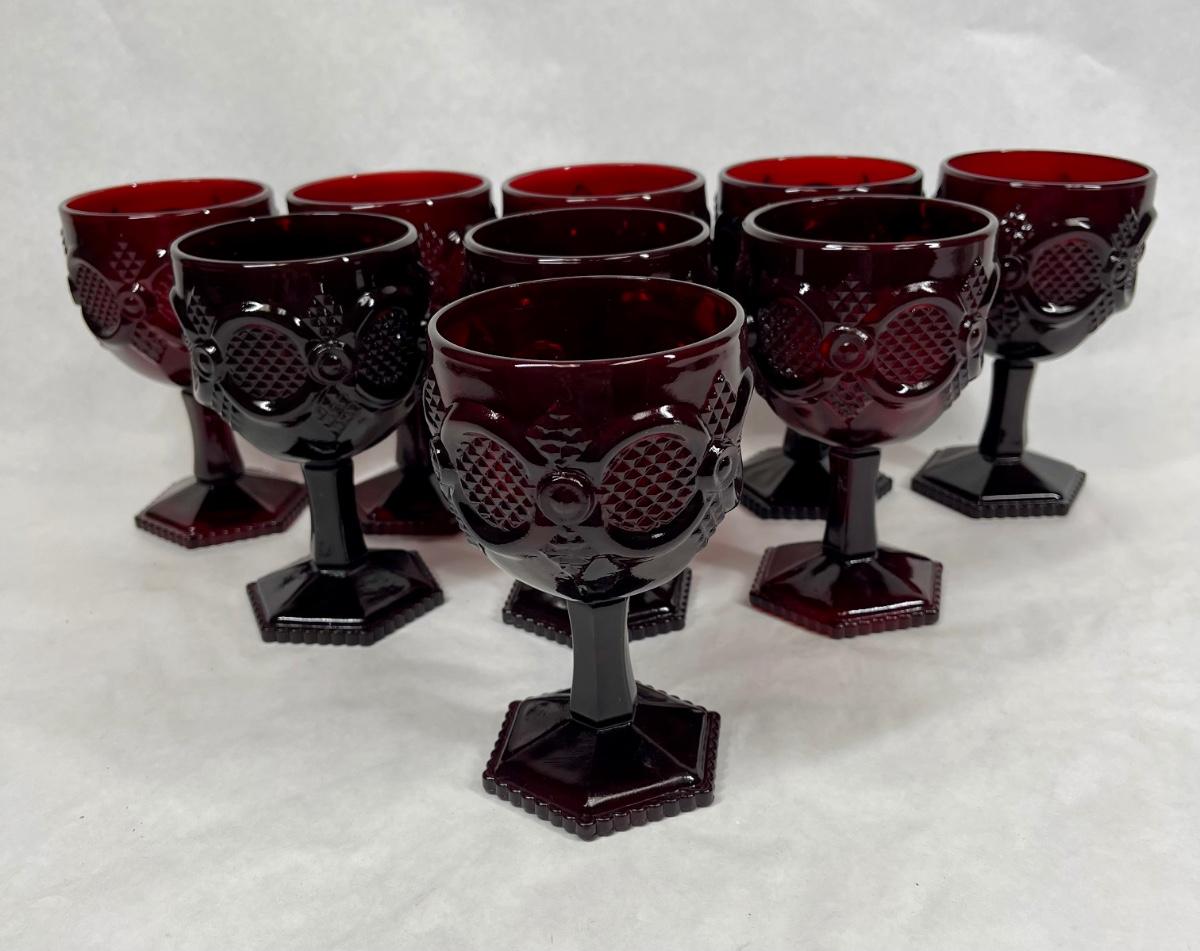 Vintage Avon Cape Cod Ruby Red Glass Goblets 9 pcs