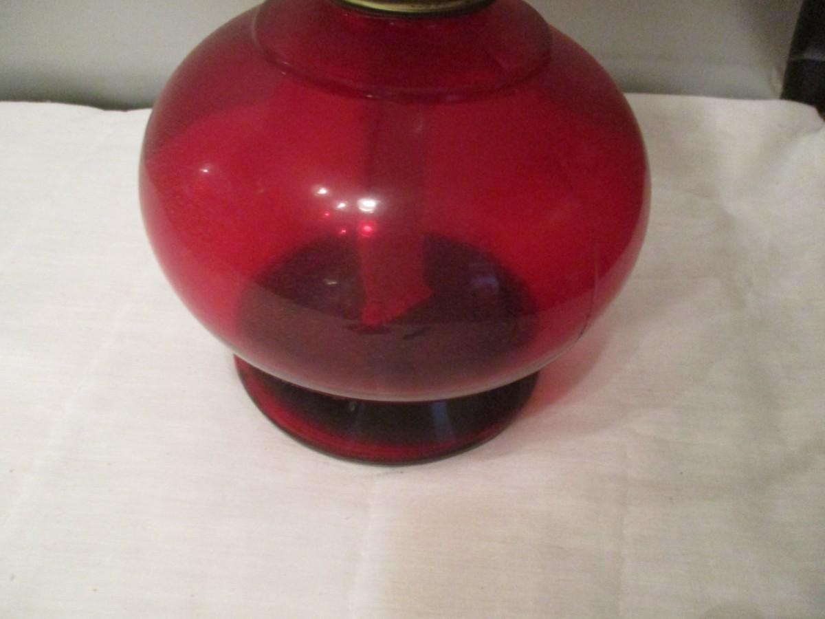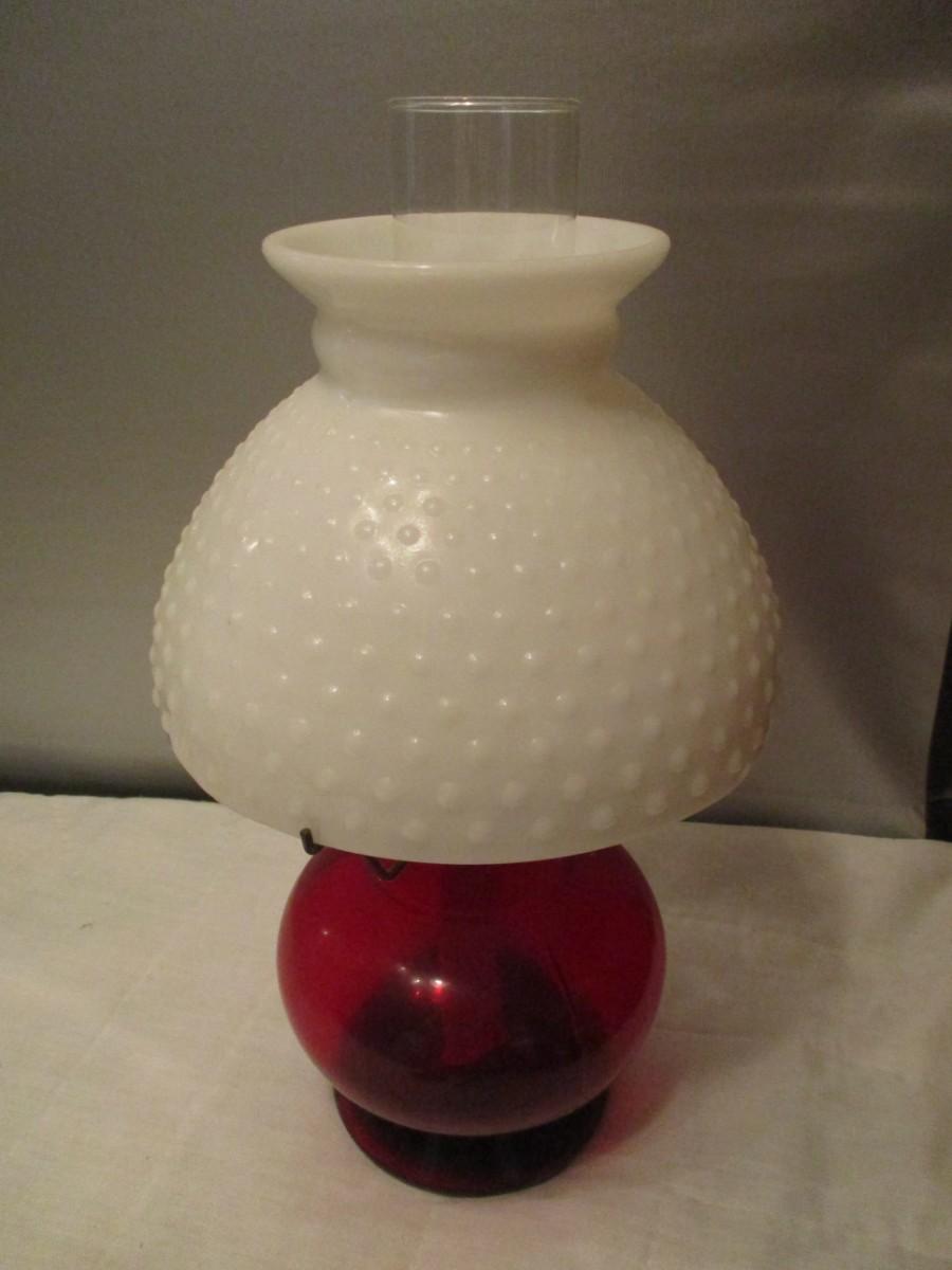 Ruby Red Hobnail Milk Glass Oil Lamp
