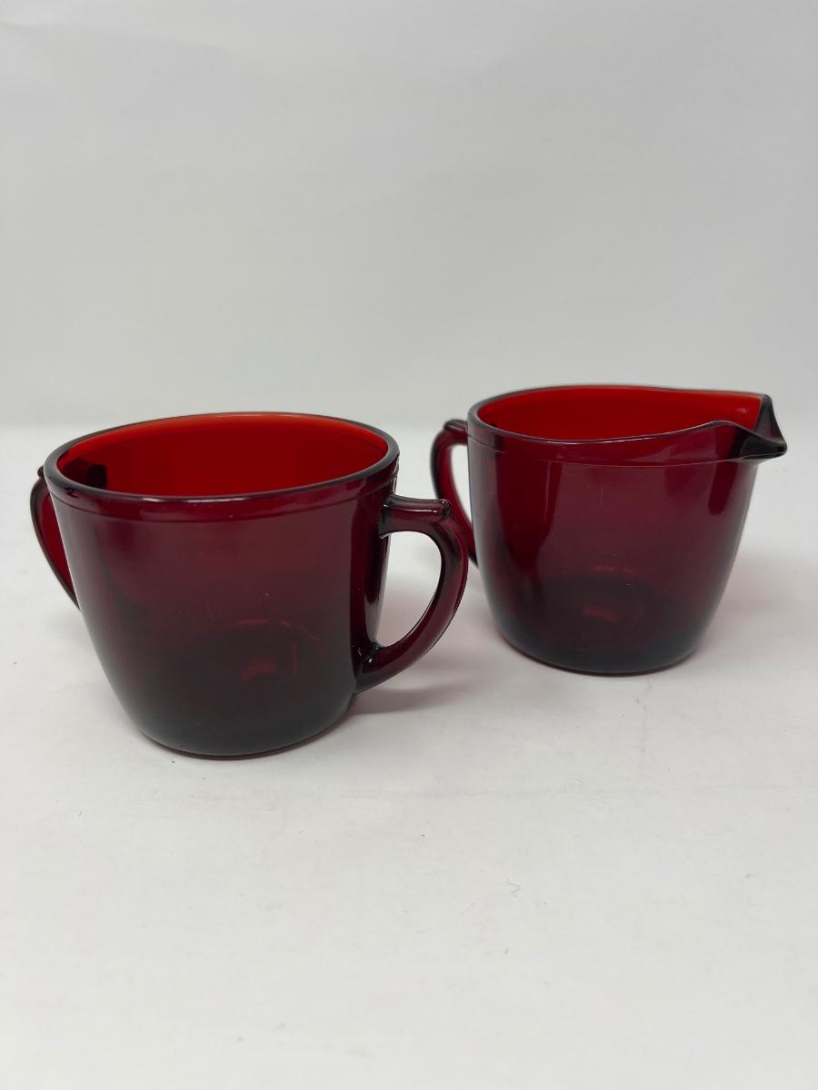 Ruby Red Juice Glass, Tulip Dish & Sugar/Creamer