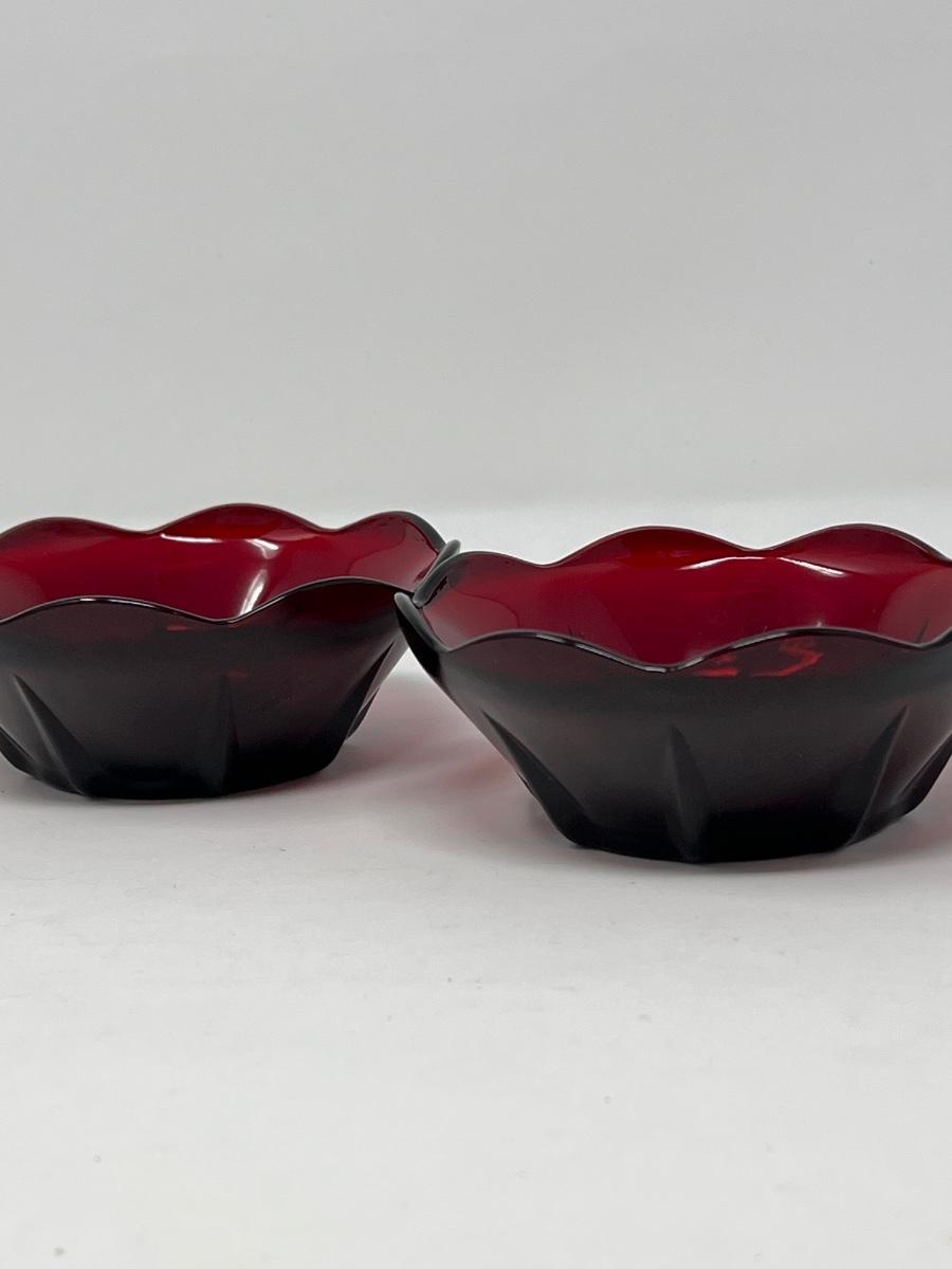 Tulip style red glass dishes - 4.5” round x 1.5” tall