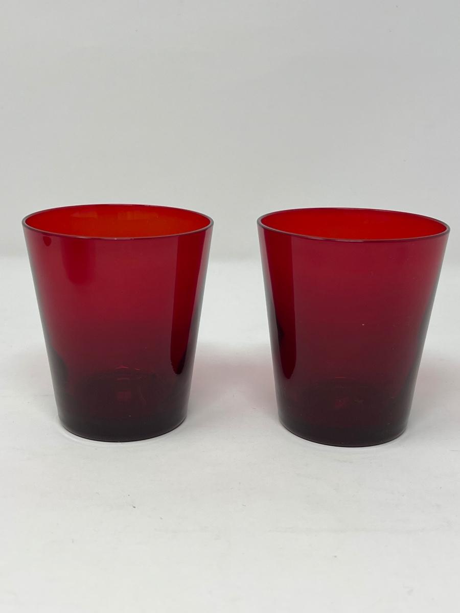 Ruby red glass juice glasses -3” tall x 2.75” tall