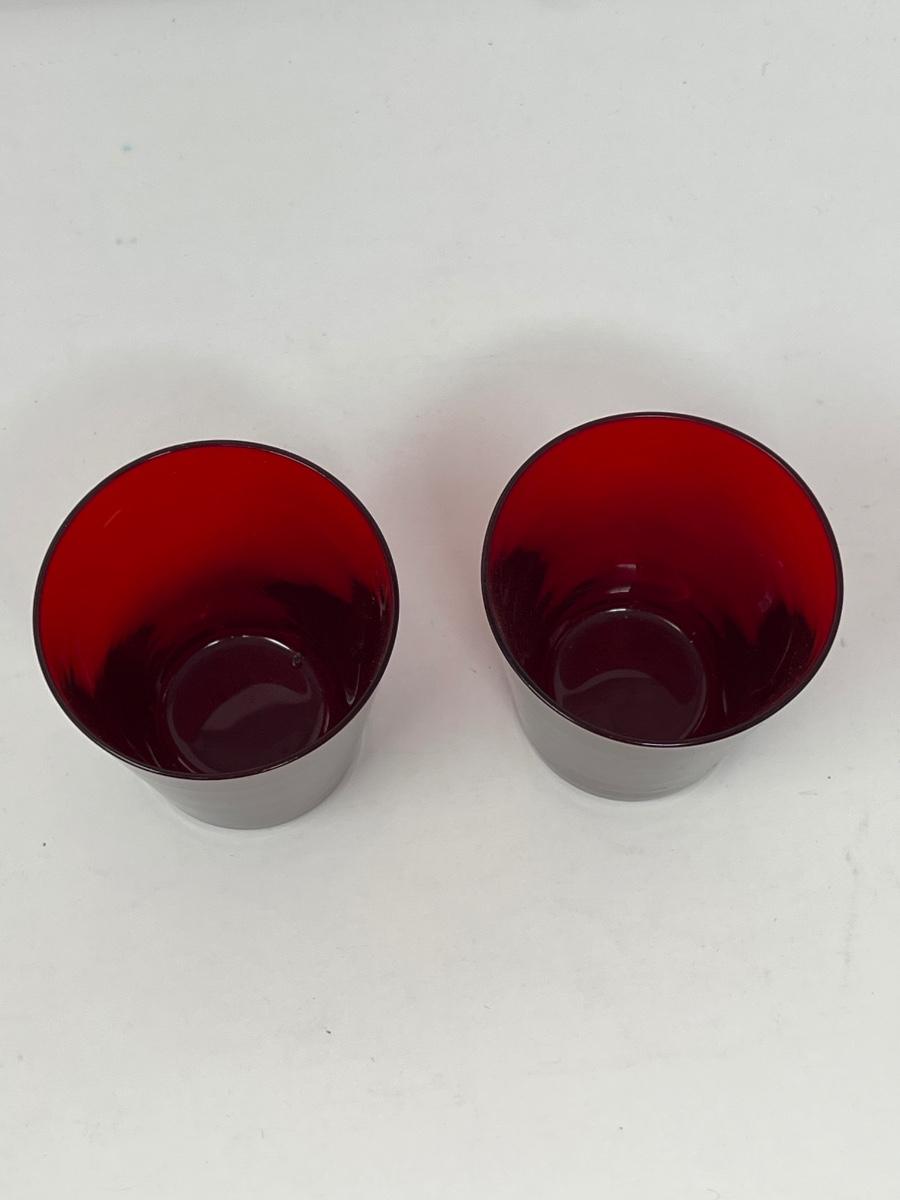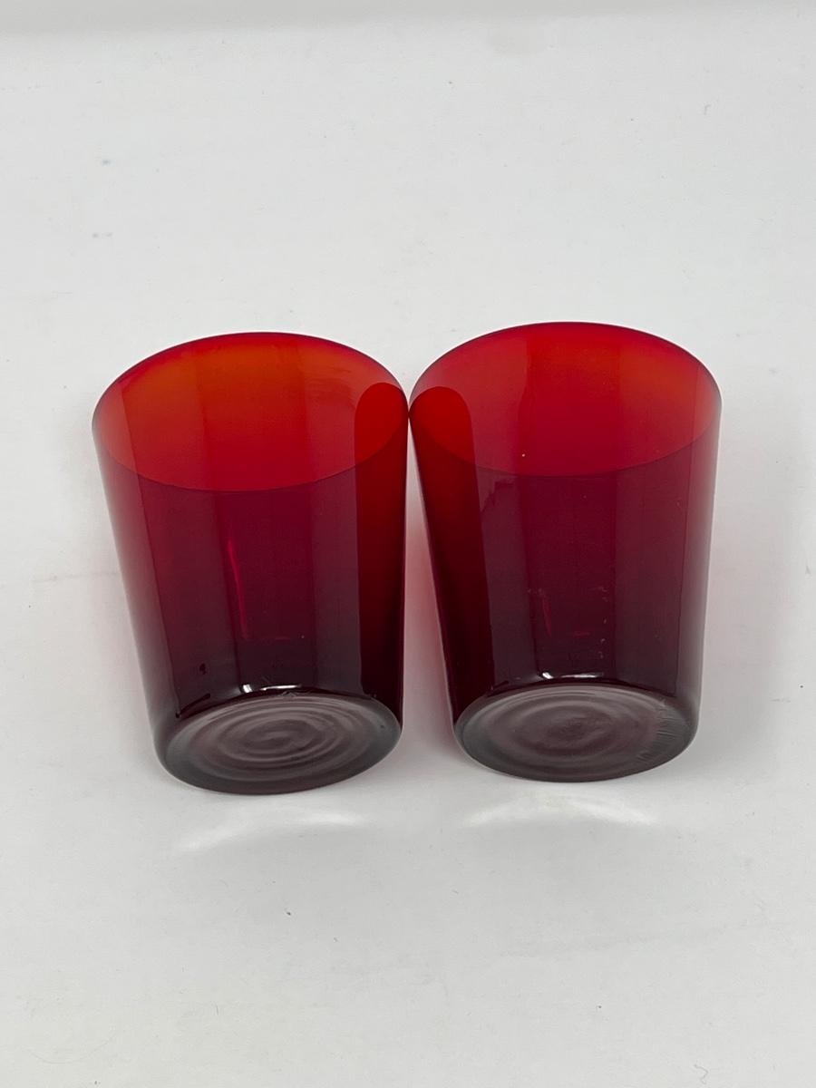 Ruby red glass juice glasses -3” tall x 2.75” tall