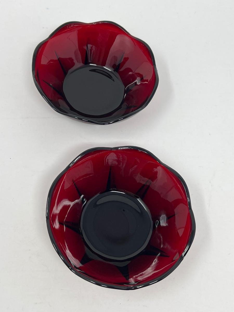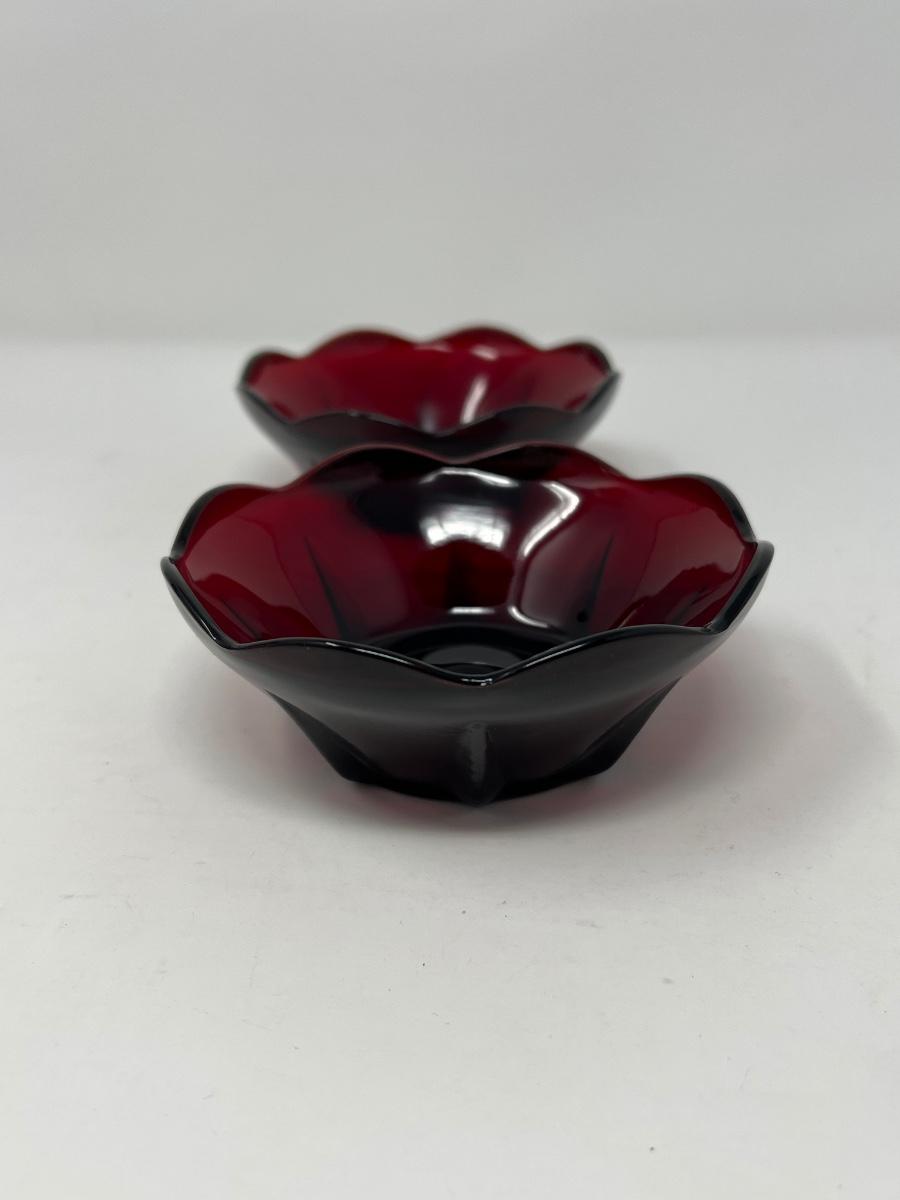 Tulip style red glass dishes - 4.5” round x 1.5” tall