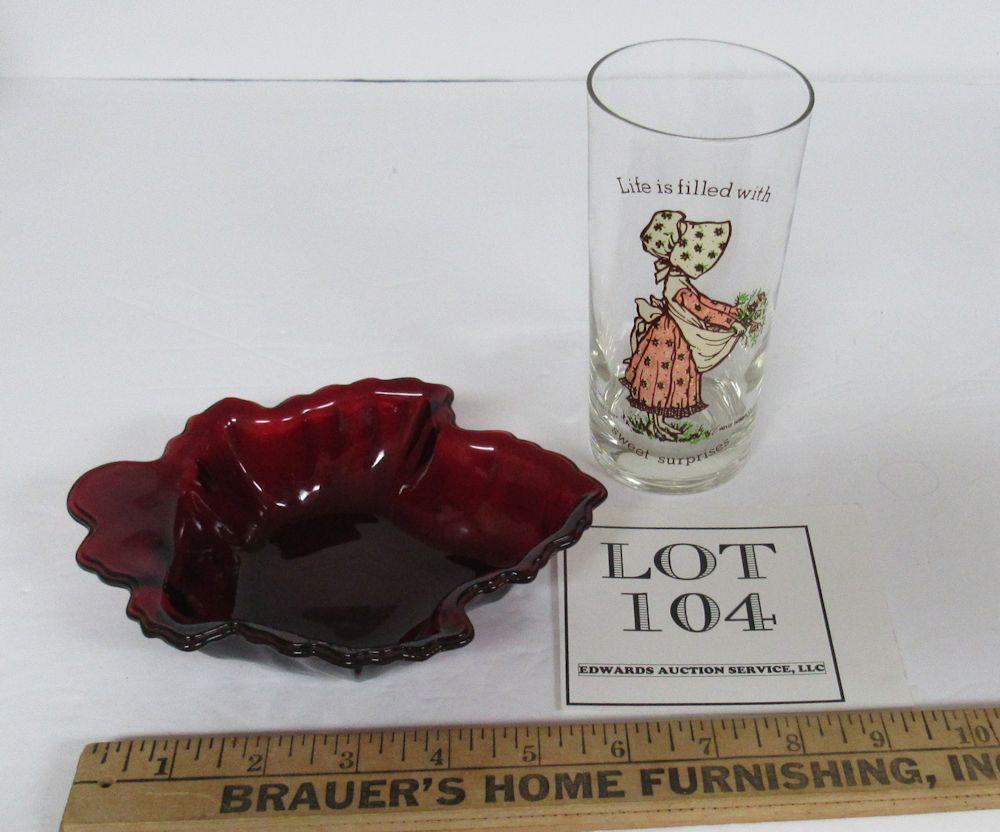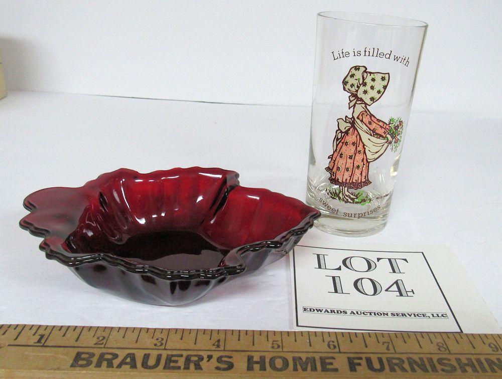 Ruby Red Leaf Shaped Dish and Holly Hobbie Tumbler