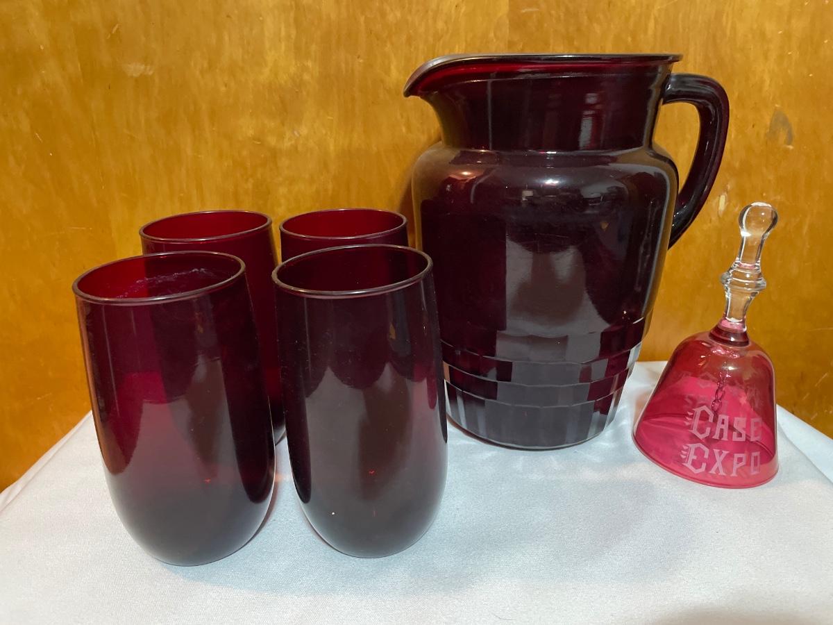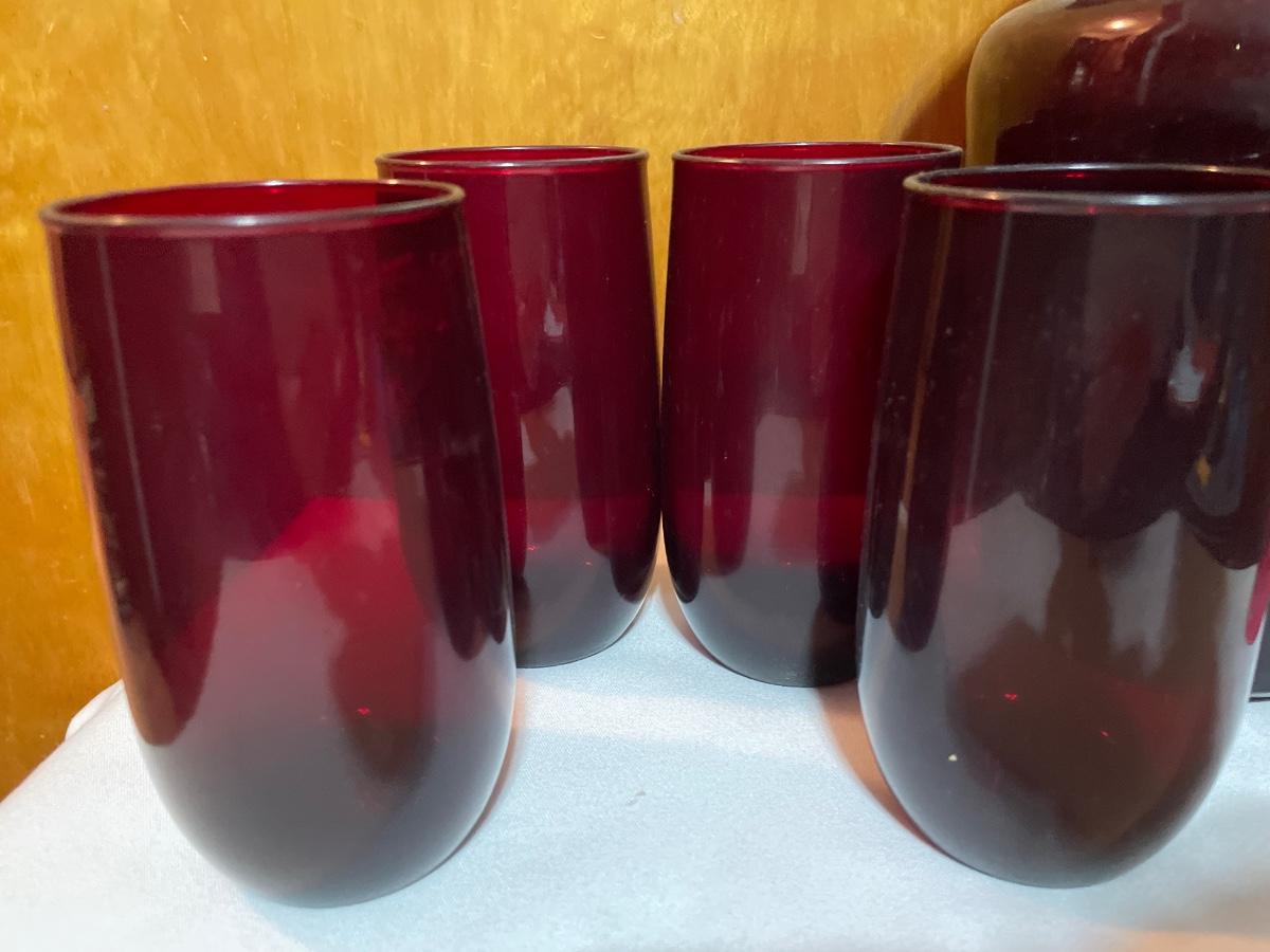 Ruby, red pitcher and four glass set