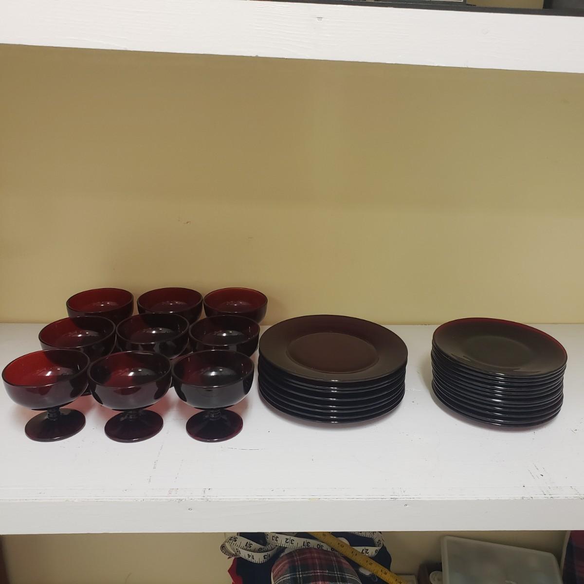 Ruby Red Plates and Sherbert Glasses (BS-KD)