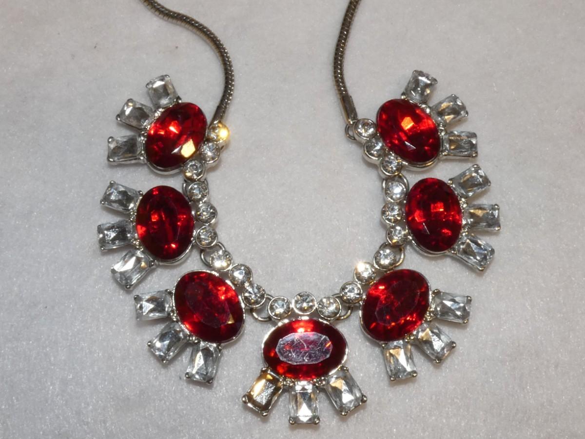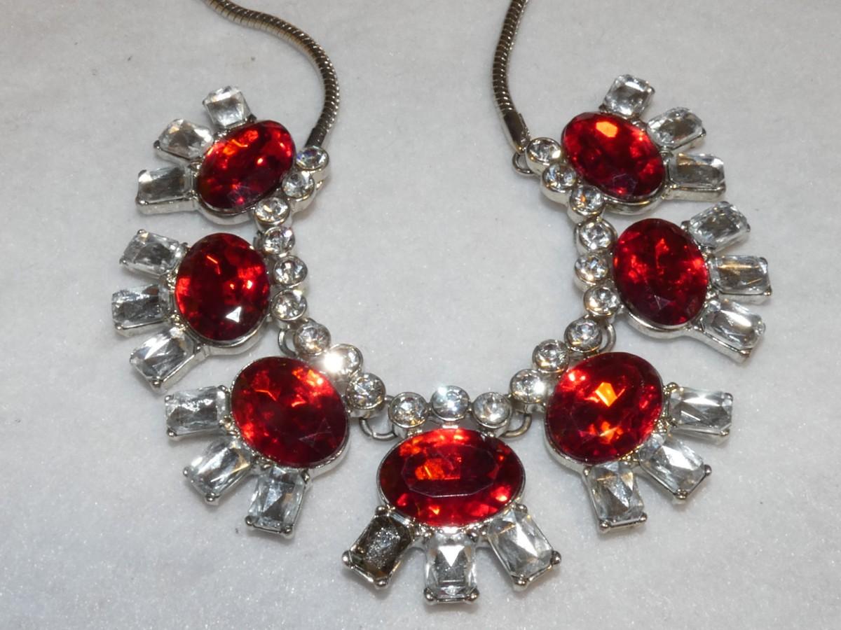 Ruby Red Rhinestone Statement Silver Tone necklace