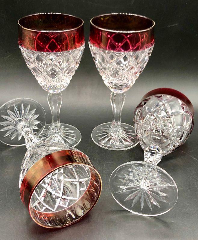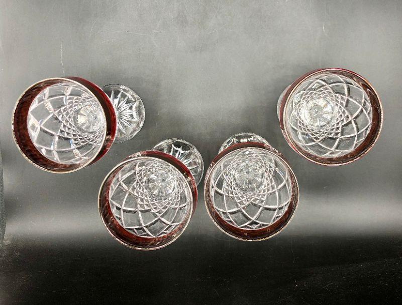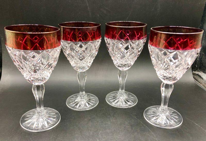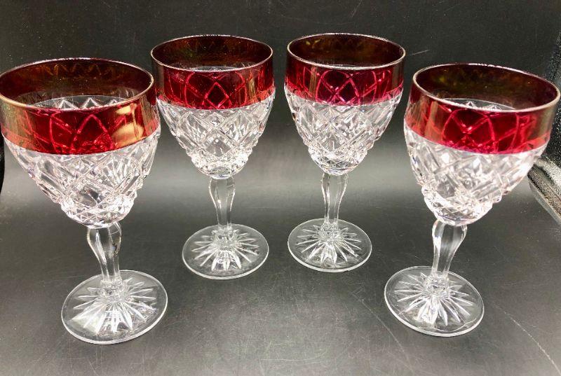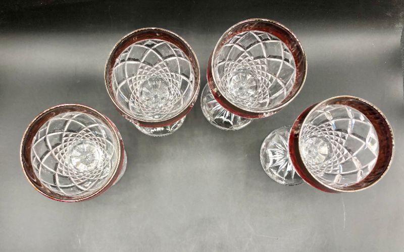 Ruby Red rimmed Crystal Stemware Set of 4 glasses