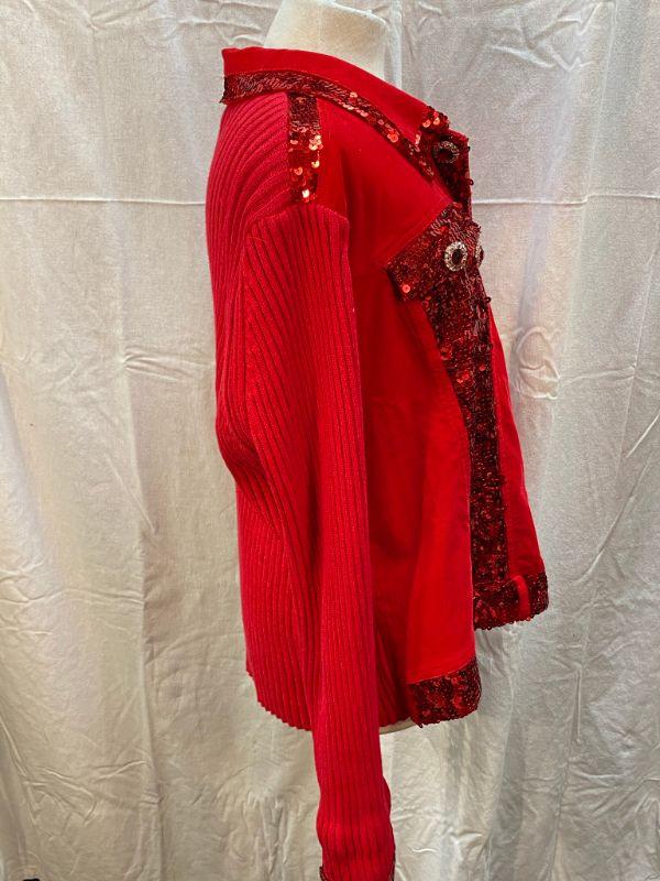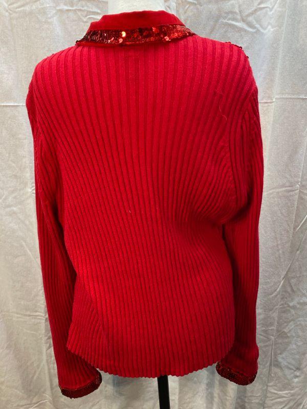 Ruby Red Sequins and Rhinestones Snap Front Sweater by Berek Size 2XL YD#020-1220-02182