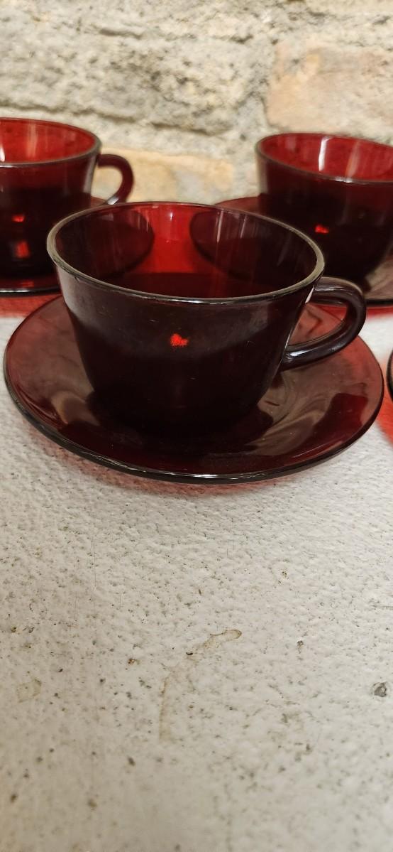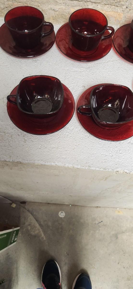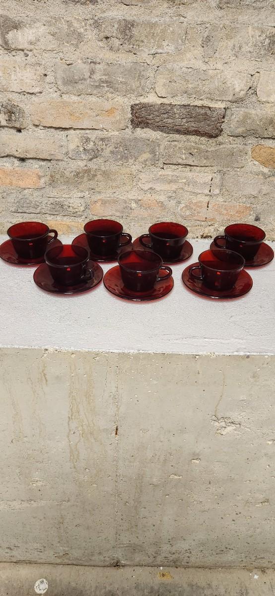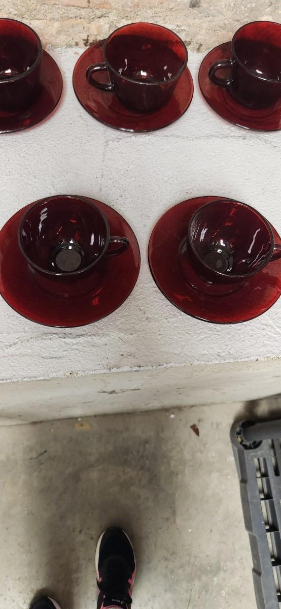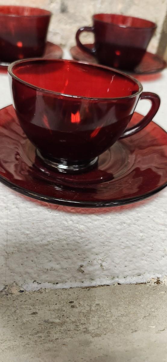 Ruby Red Teacups and Saucers