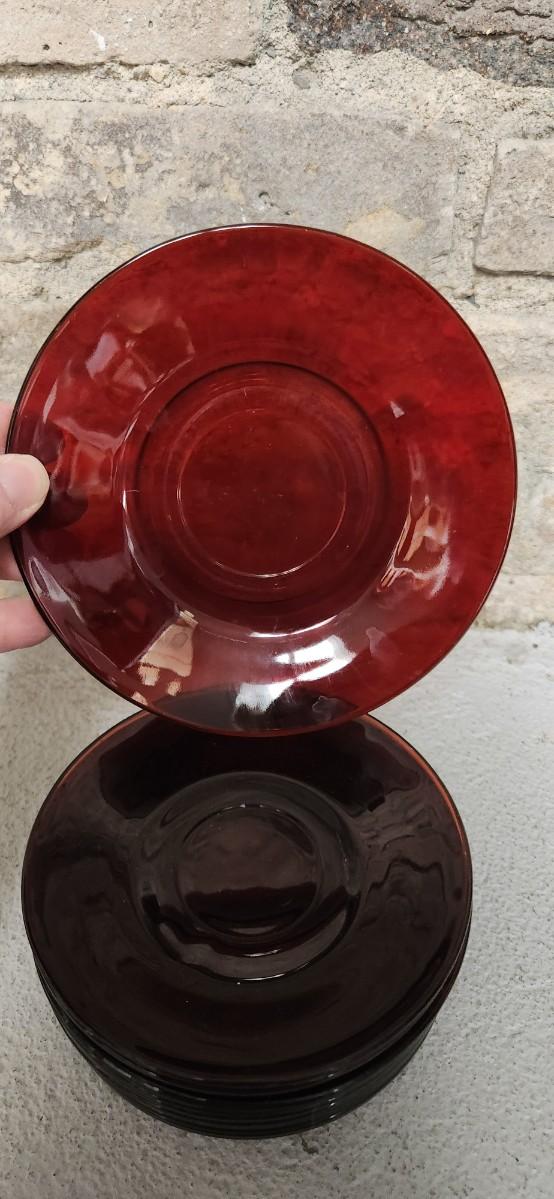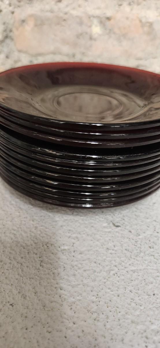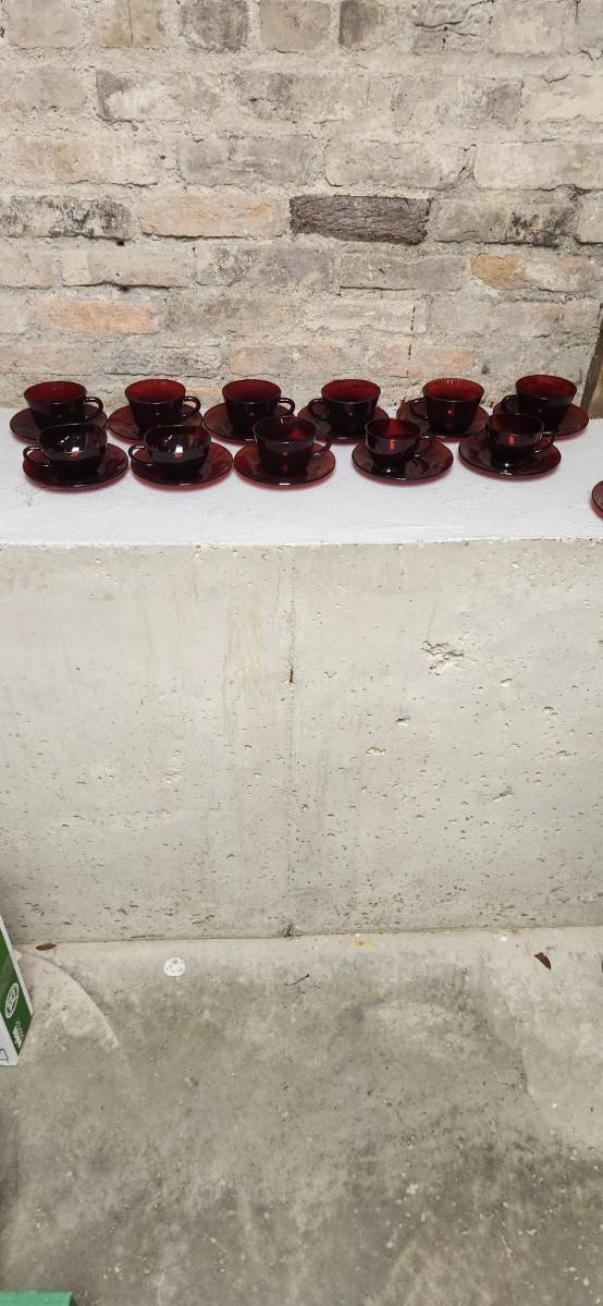 11 Ruby Red teacups and Saucers. Not all the same