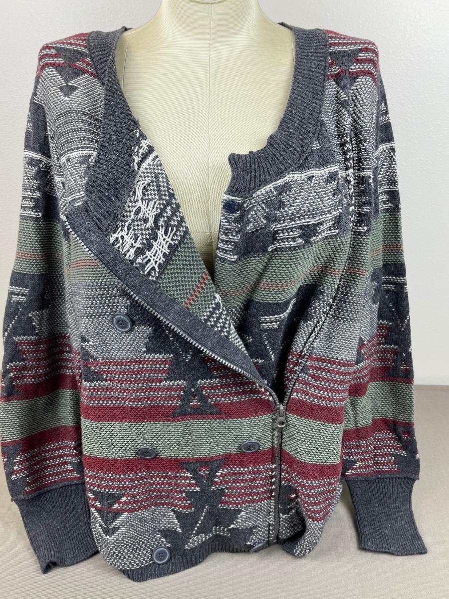 Ruff Hewn 1X Asymmetrical Zip Aztec Cardigan
