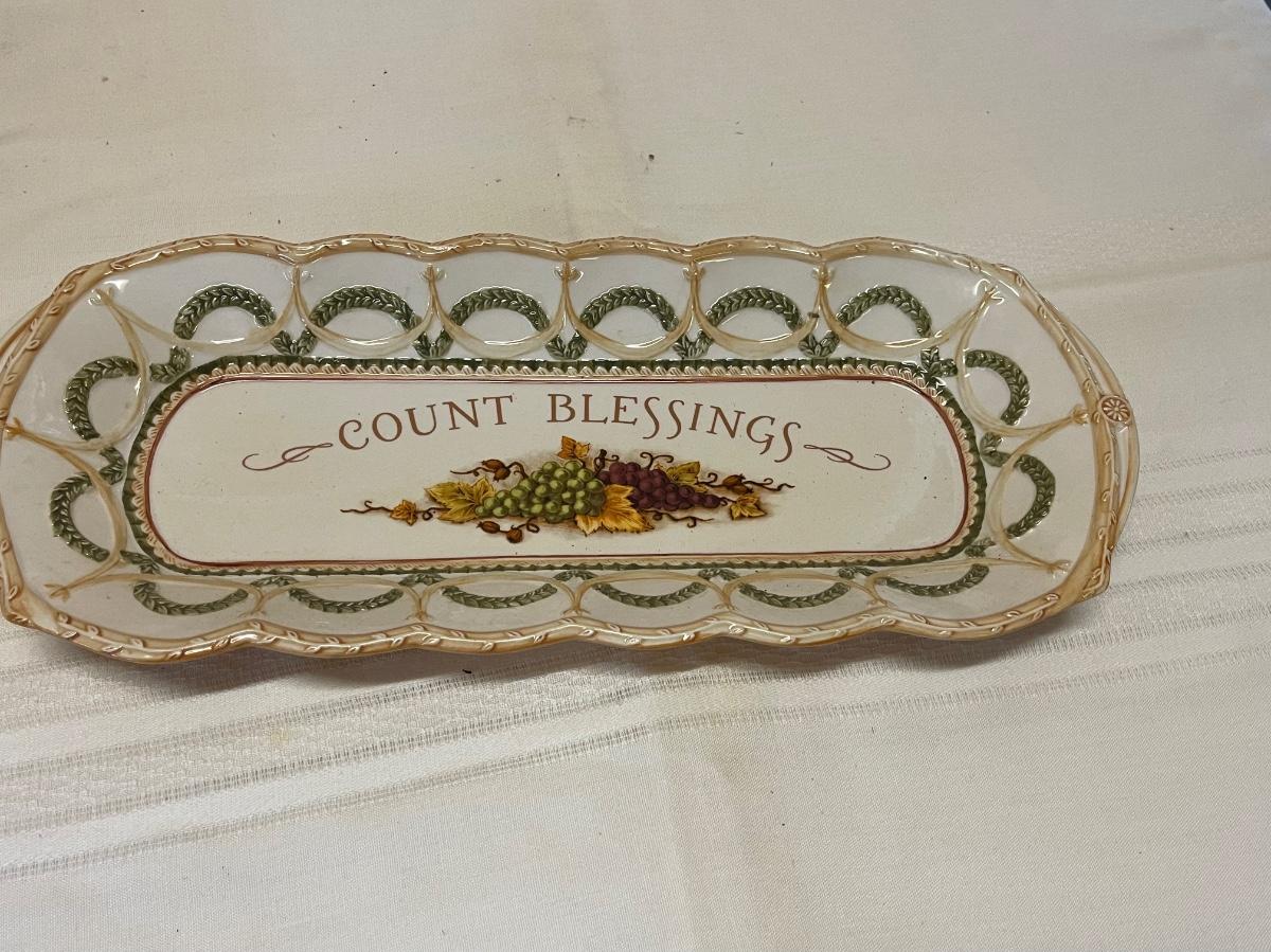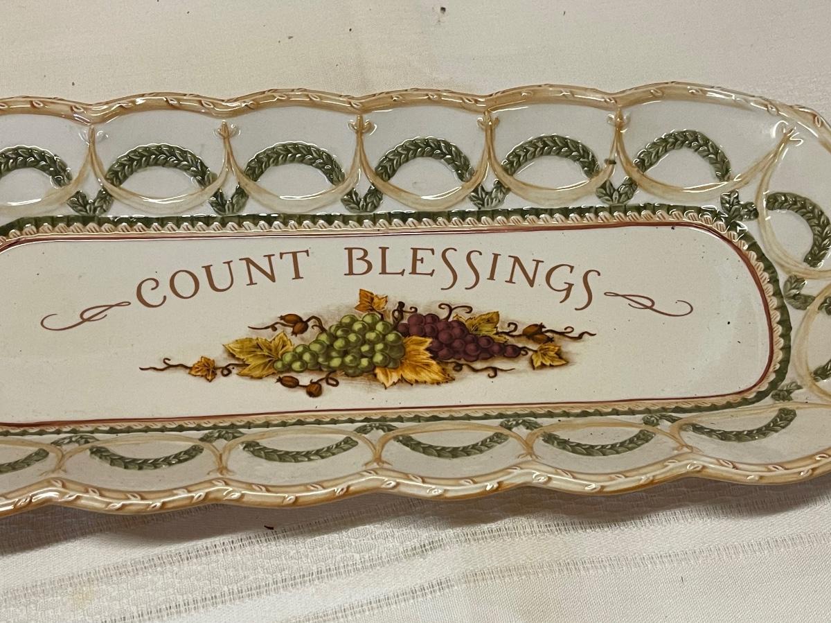 Ruffled Ceramic Count Blessings Serving Plate