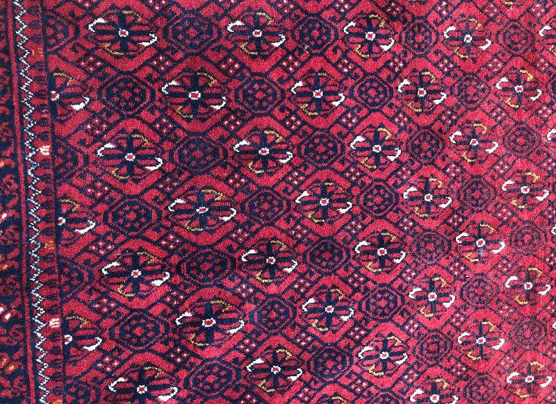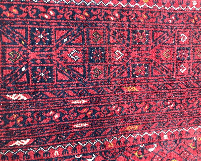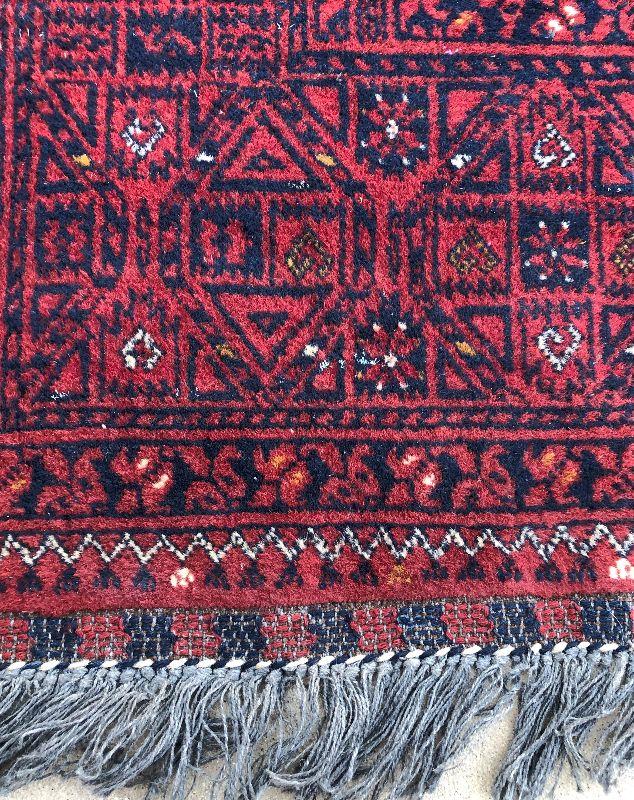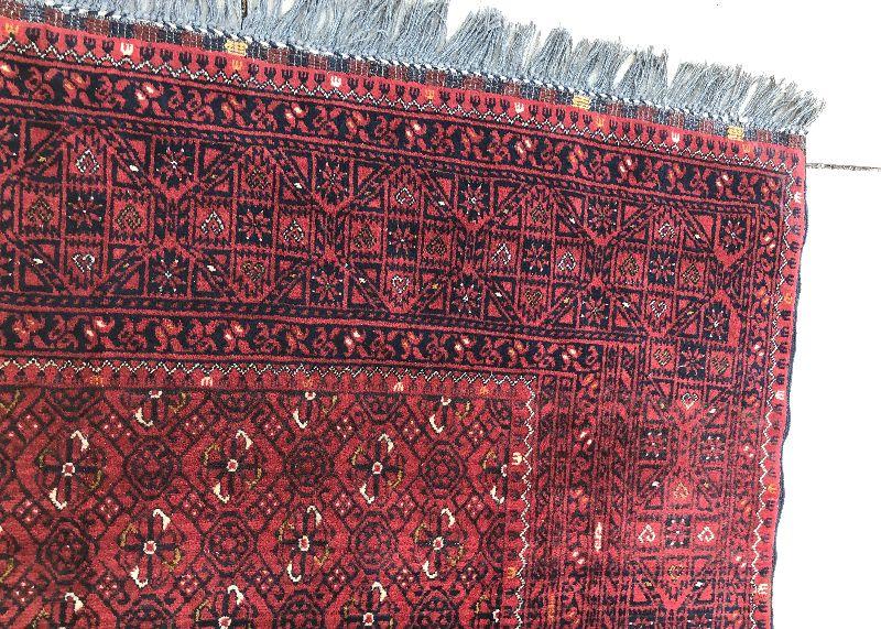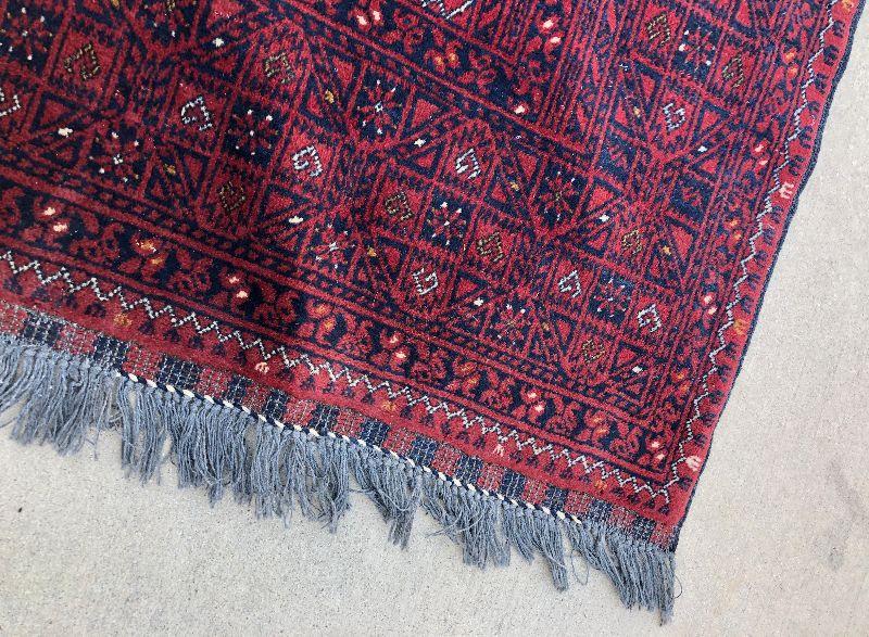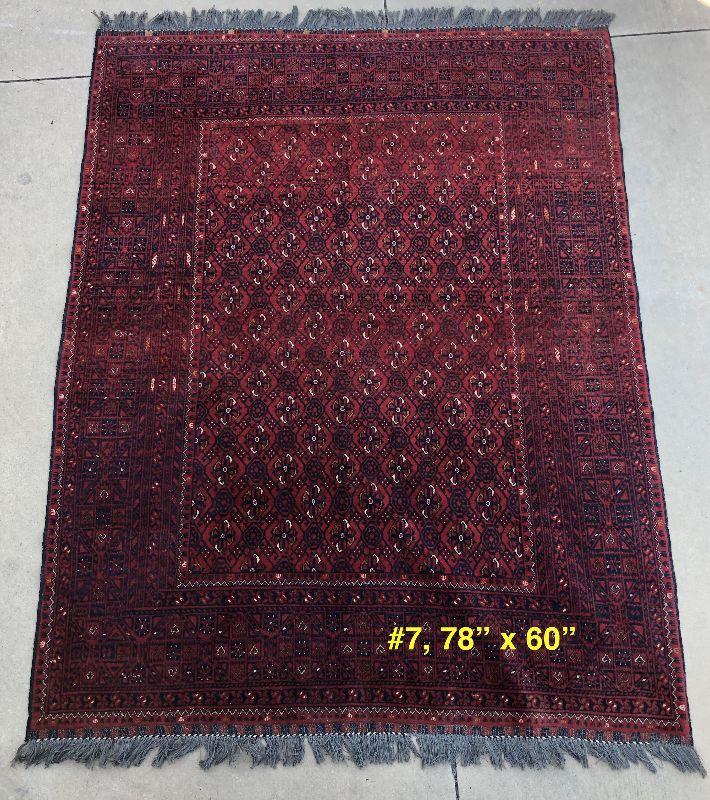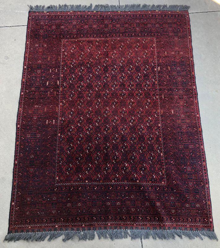 Vintage middle eastern carpet, Afghan Kunduz, made in the border region/refugee camps near Pakistan in the early 1980's, Good over all condition, some light wear from use. 78" by 60"
