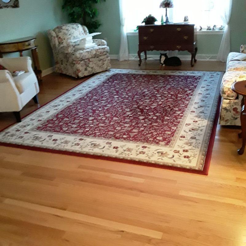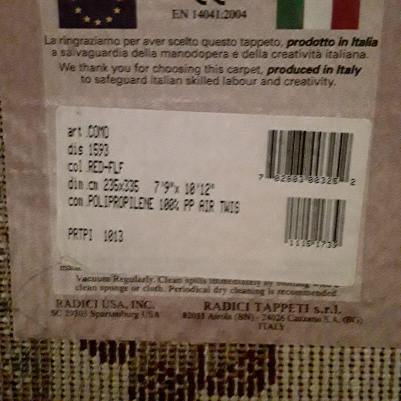 Como 7' 9" x 10' 12" Area Rug red, tan and cream ~ used in formal living very good condition