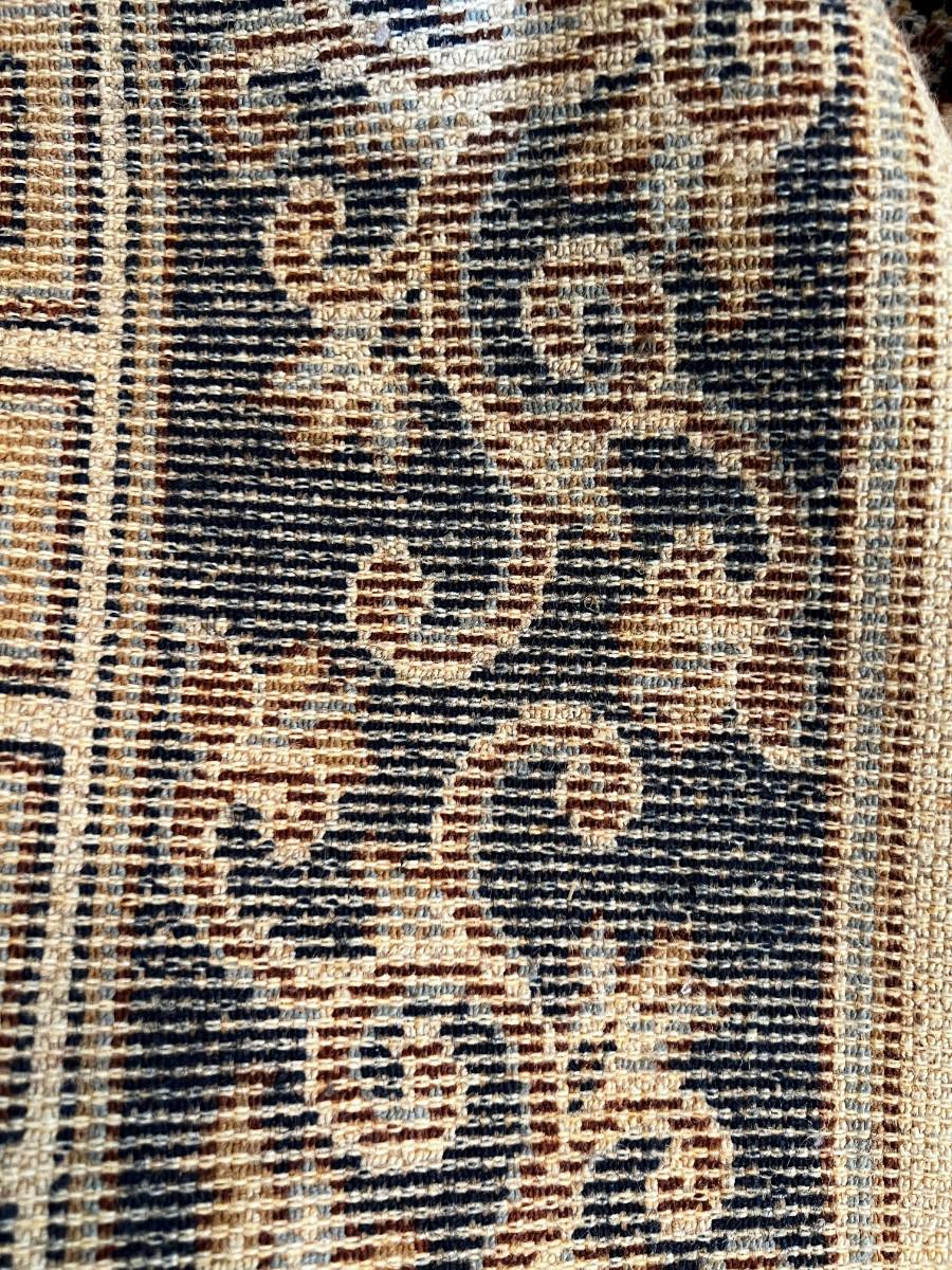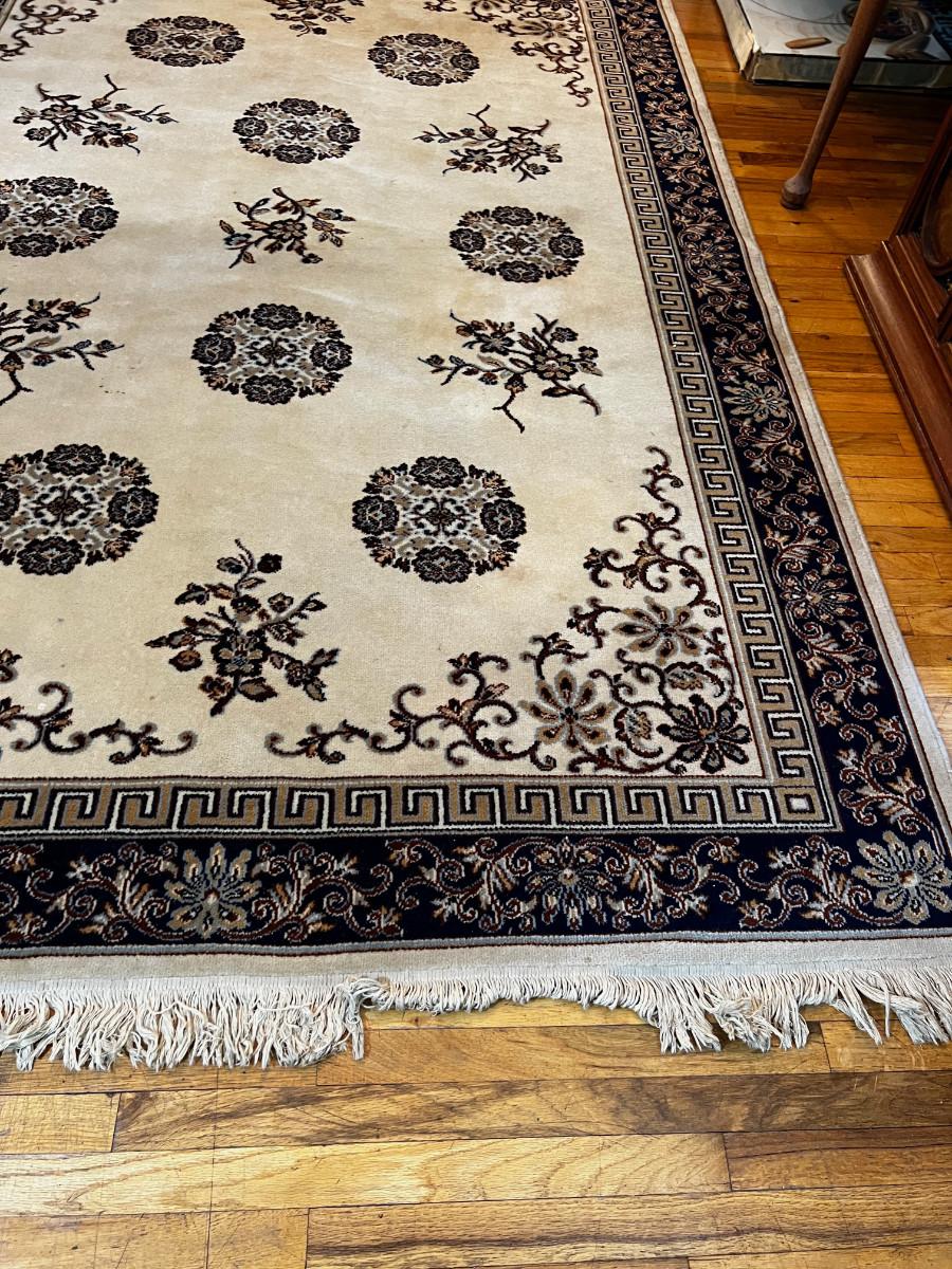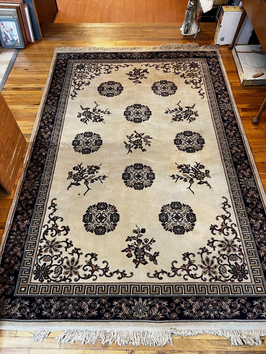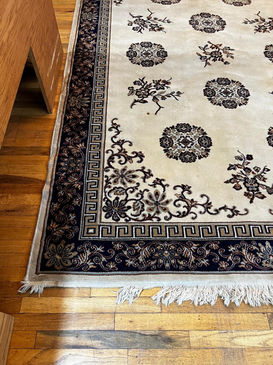 Could be hand woven. Has a few spots but not awful! 71 X 107" Locals only! Heavy! Bring Help please!