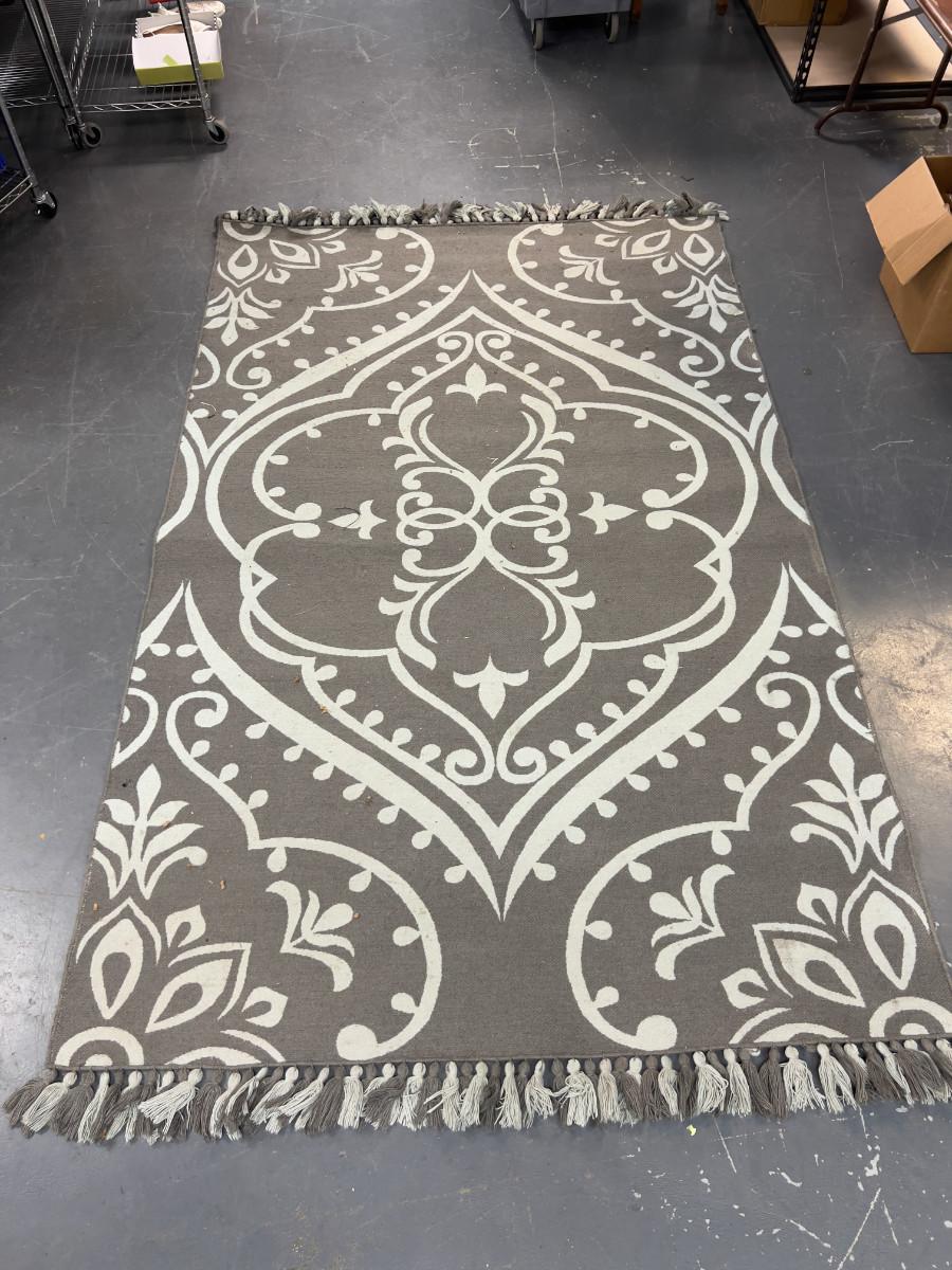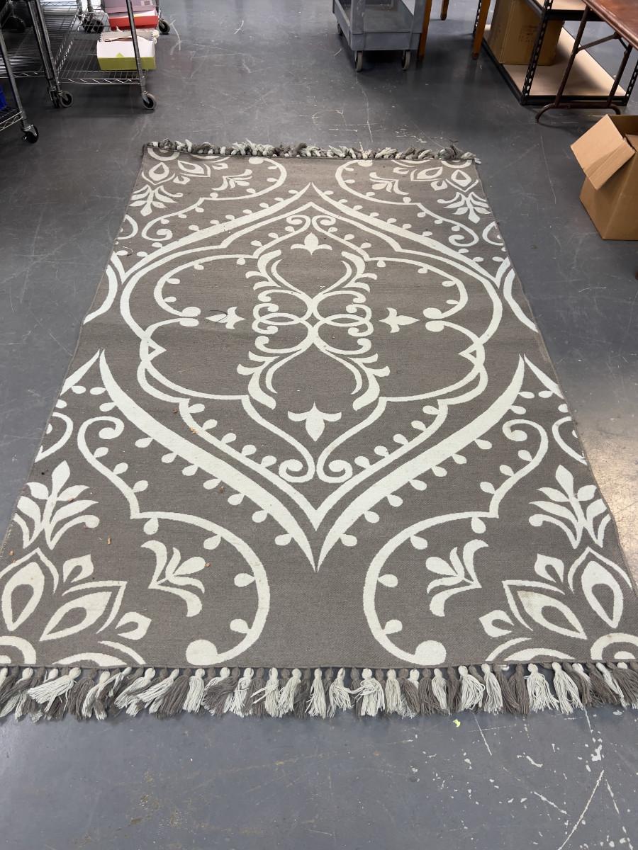 Rug Cotton Woven Patterned: Color Gray and a Light Sea Foam Blue