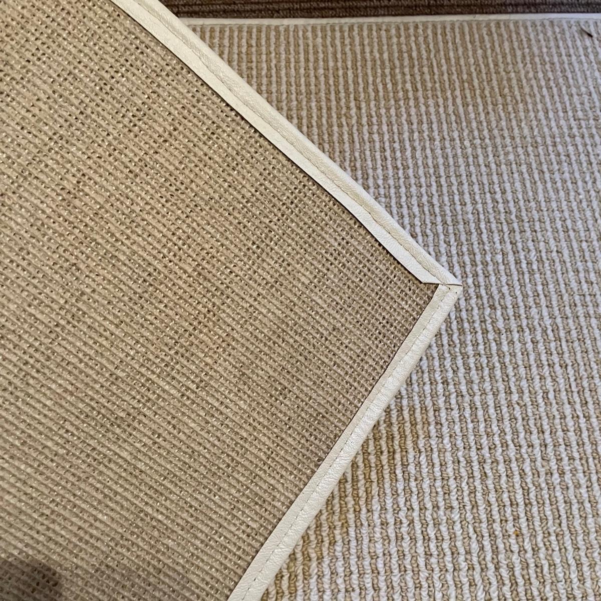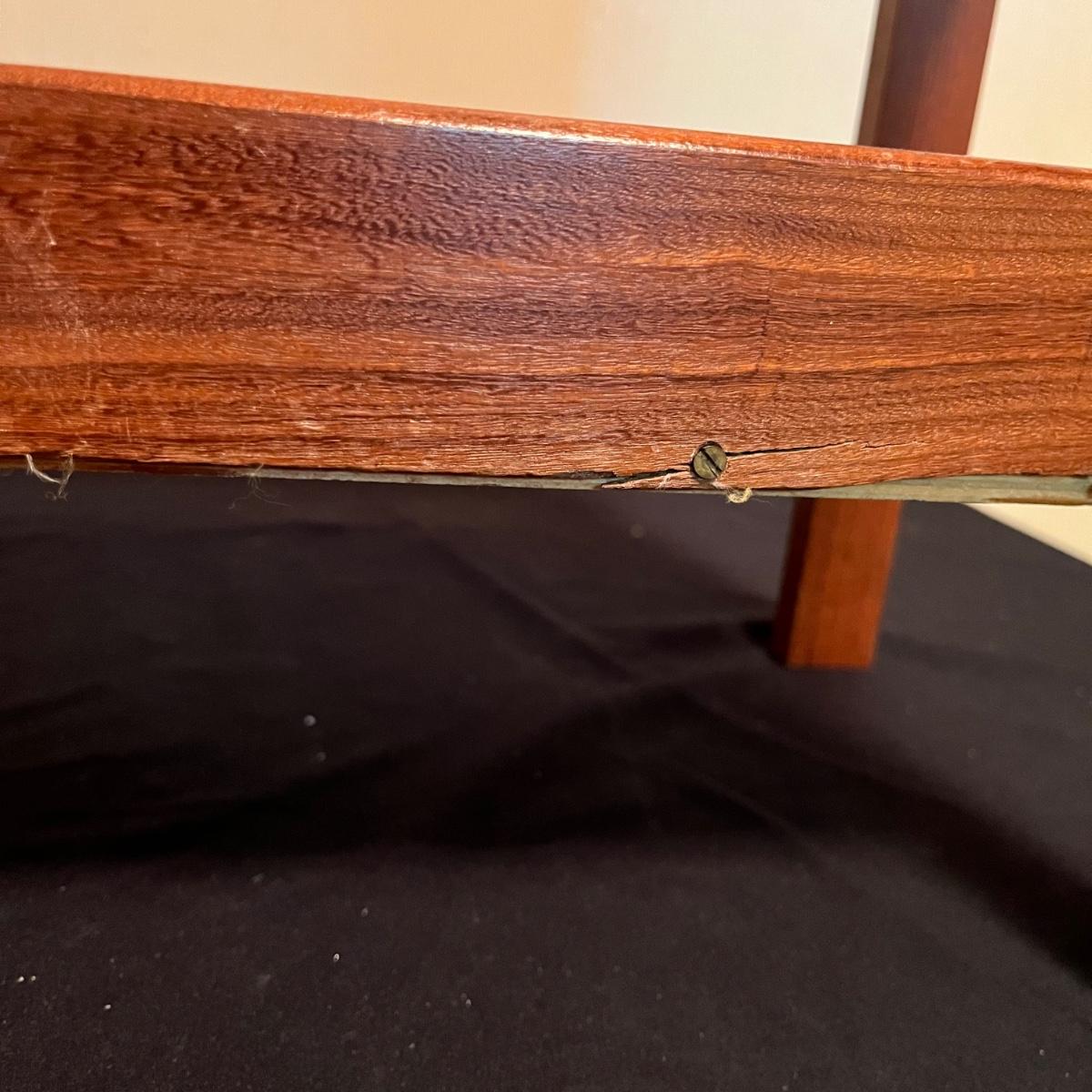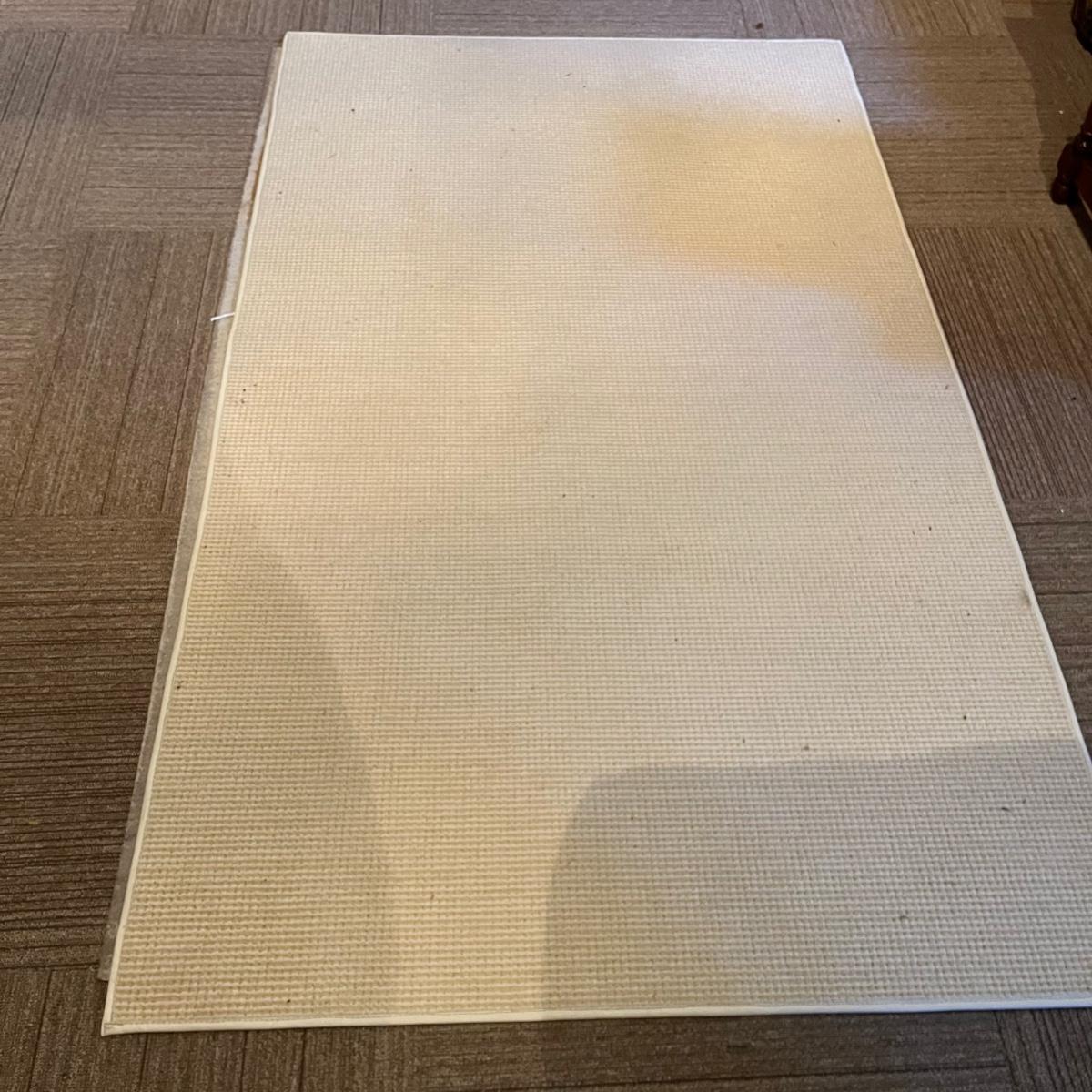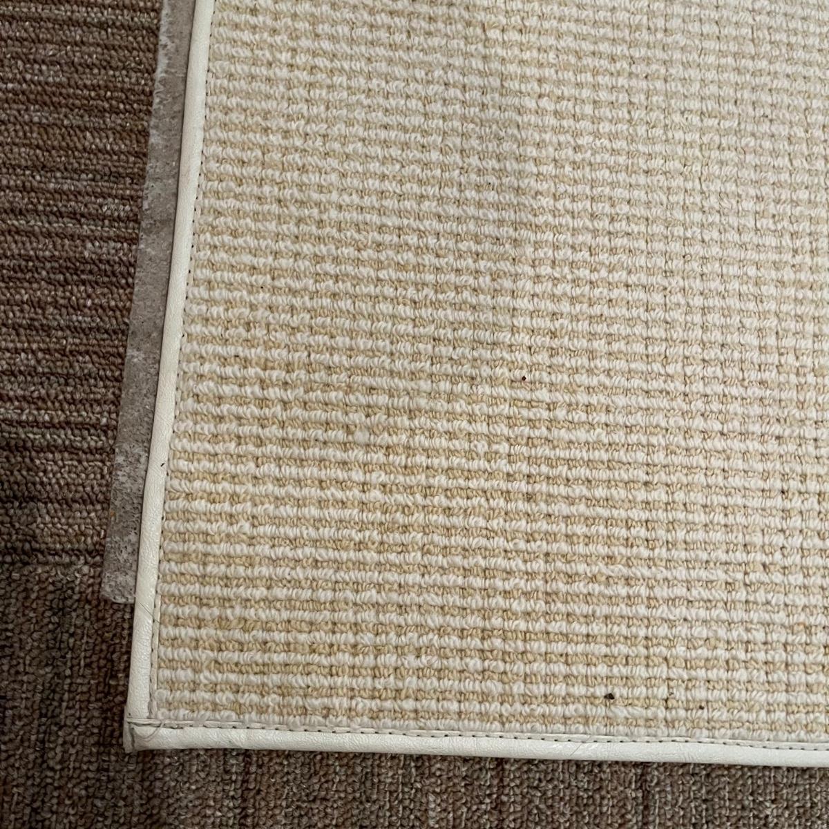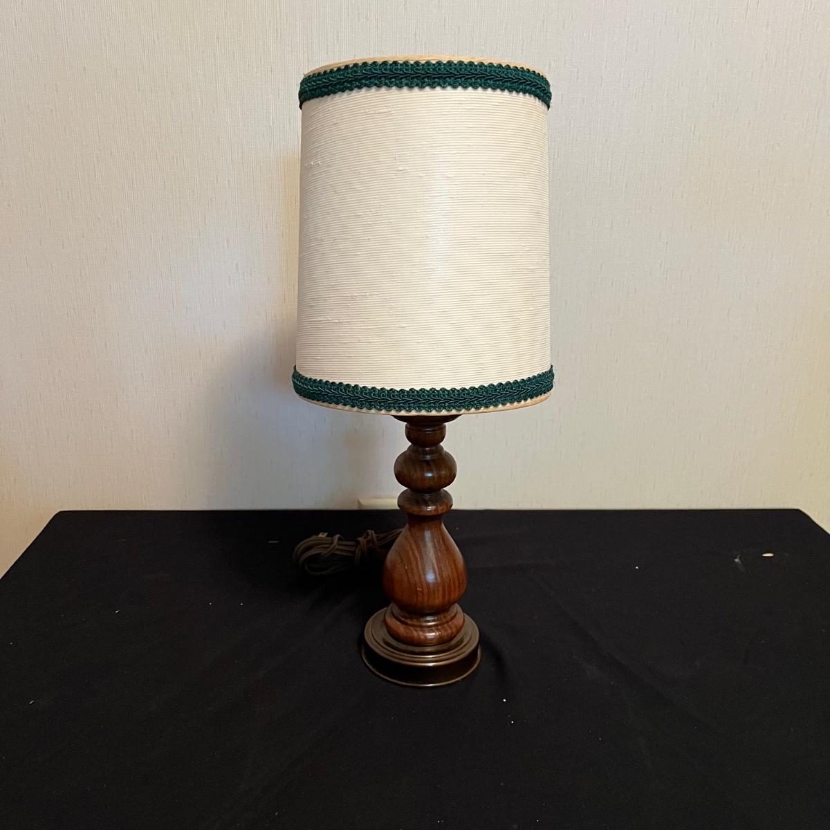 Lot includes a wooden magazine rack, wooden and metal table lamp and a cream colored Berber style area rug that measures 43” x 74”. Magazine rack measures 8” x 20” x 14”and also has a small split , see pictures.