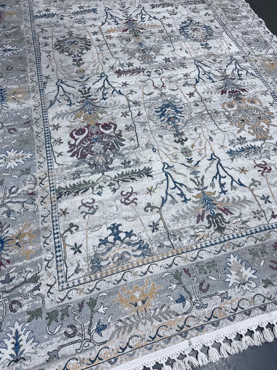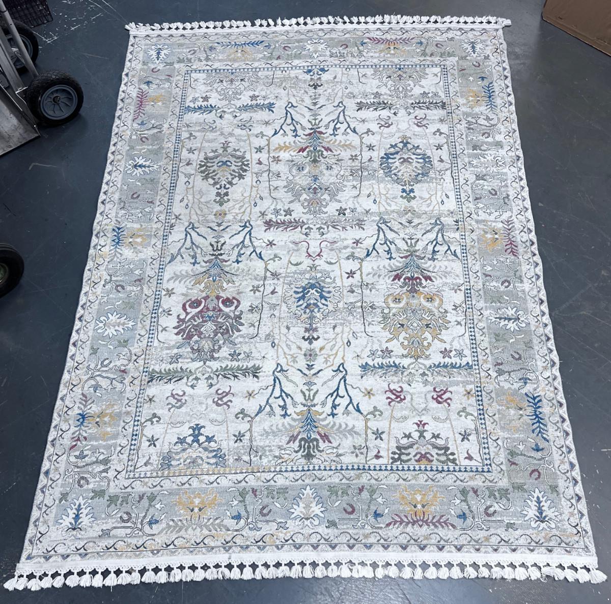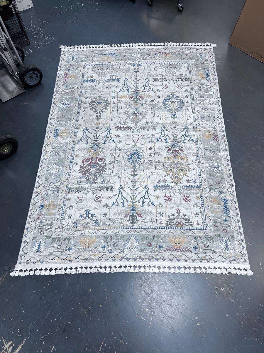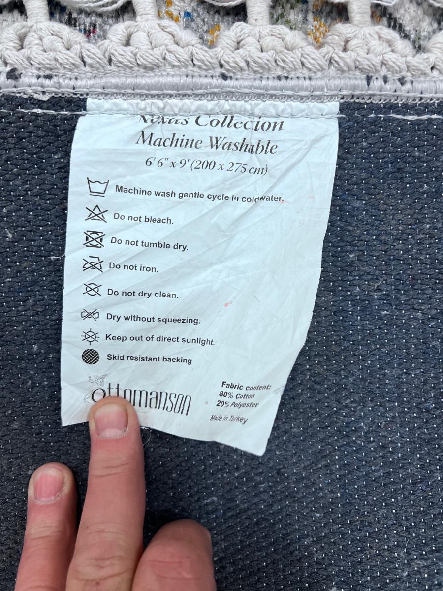 6'6" X 9 Used. Fairly Clean, WASHABLE! Better figure out how to wash before doing so - do some research
