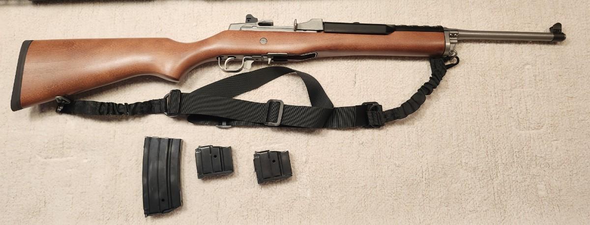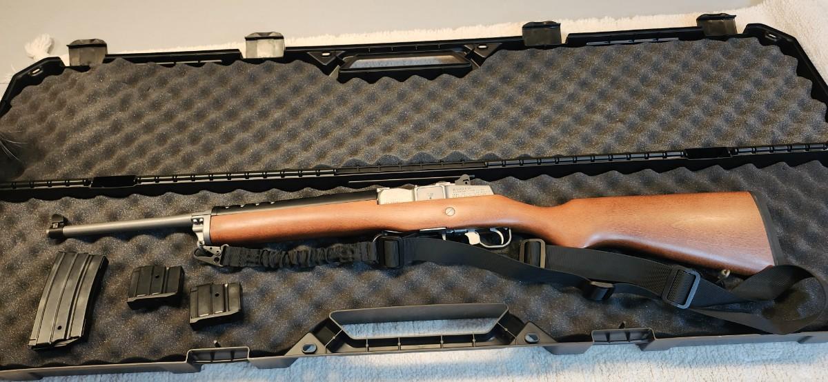 LOCAL PICK UP ONLY Ruger Mini-14 Semi-Auto Rifle with Wood Stock 223 W/ 3 Magazines and Case
