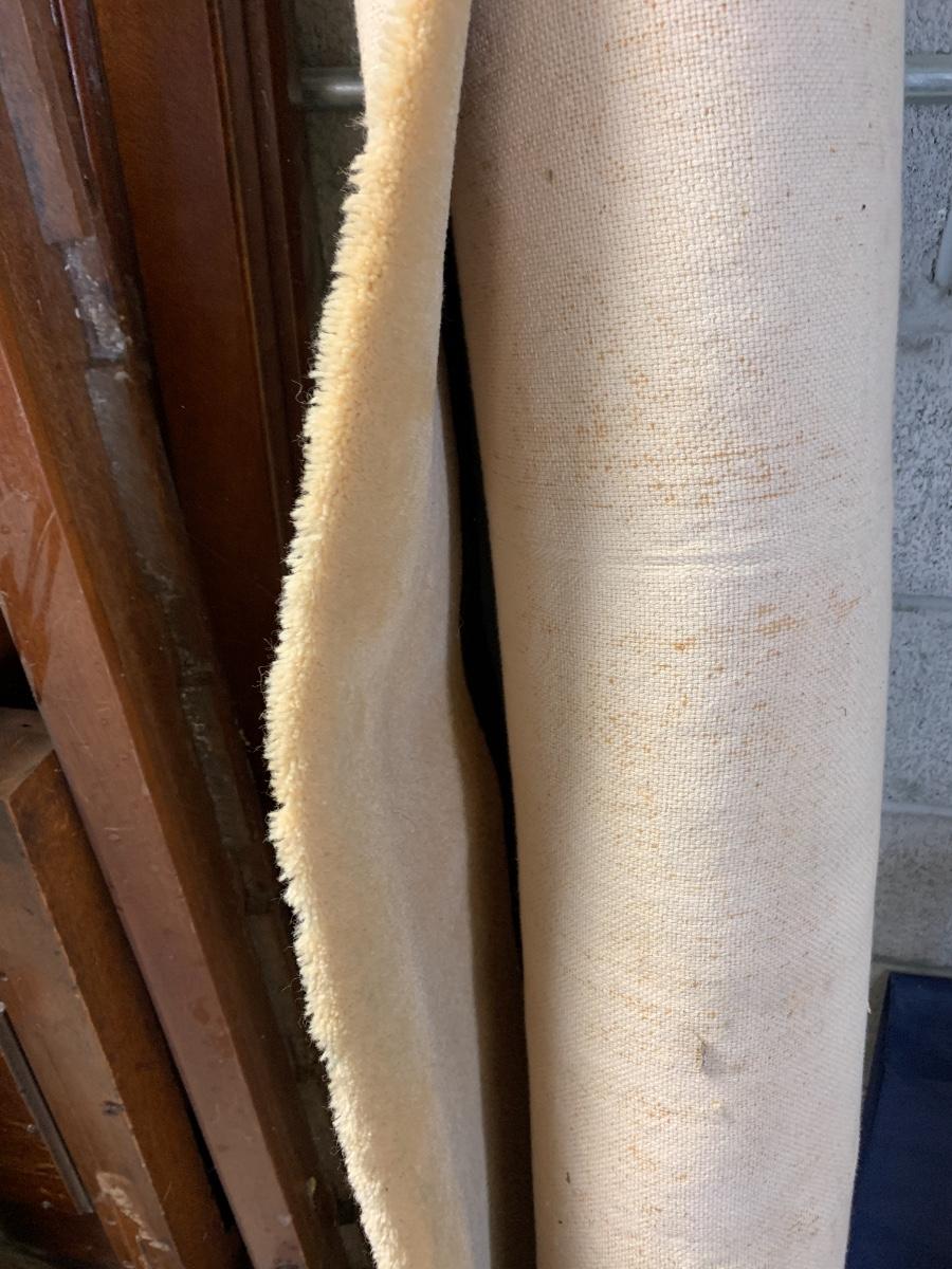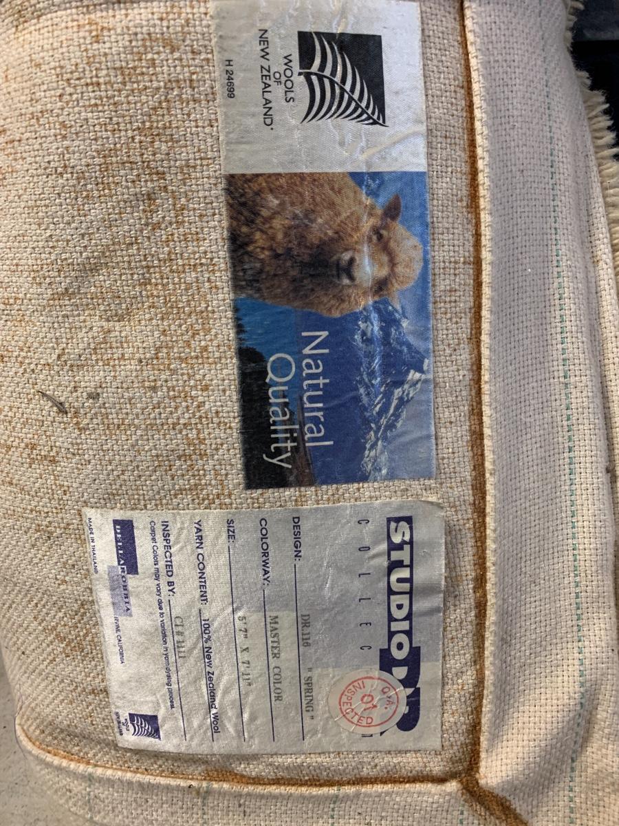 5’7” x 8’ yellow rug, material unknown, from New Zealand. (#13Rug)