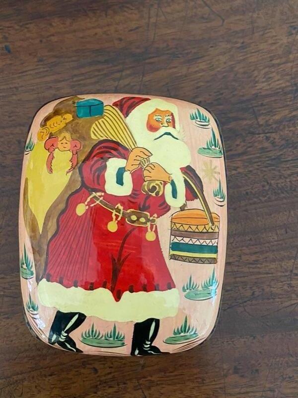 hand painted lacquer box with black interior. 3" X 41/2", 2" height