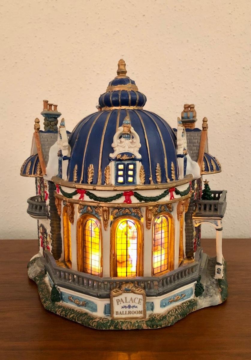 Lights up, plays music and figures dance inside