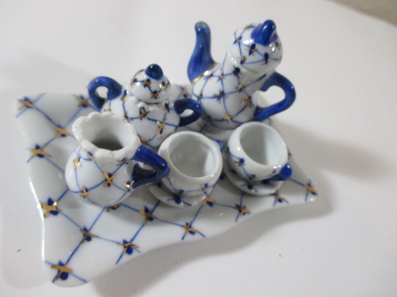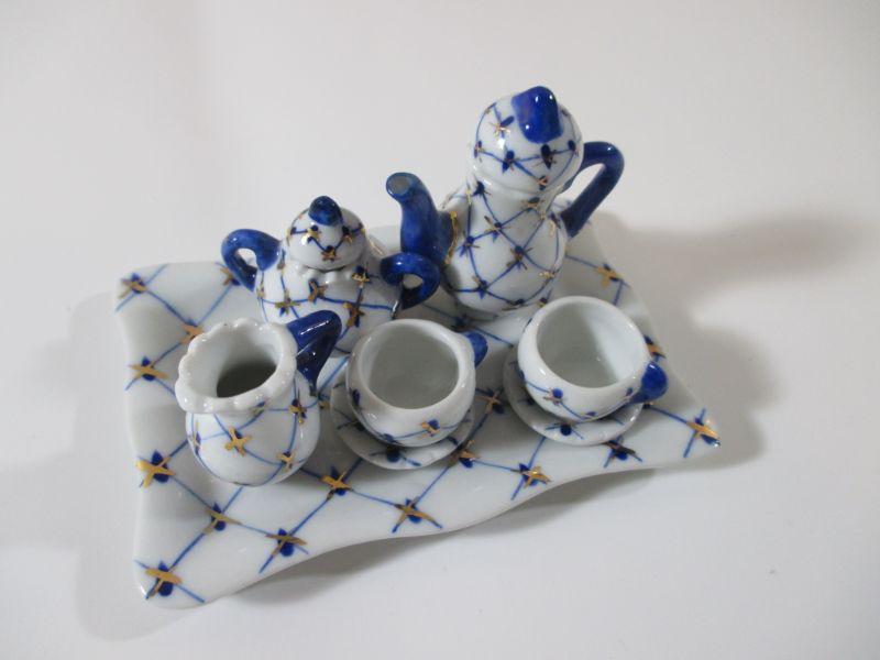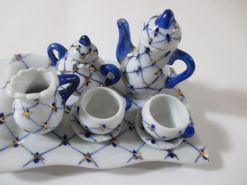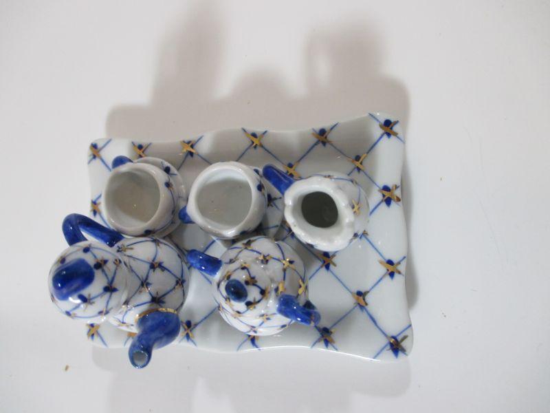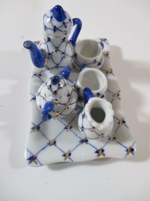 Russian Cobalt Blue Mini Tea set Rare Lomonosov 22K Gold Bone China