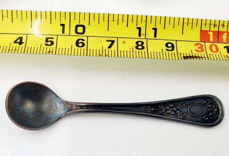 Glass insets wrapped in a beautiful metal design with small silver plate spoons