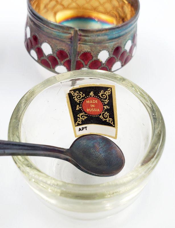 RUSSIAN GLASS/METAL CONDIMENT SERVERS